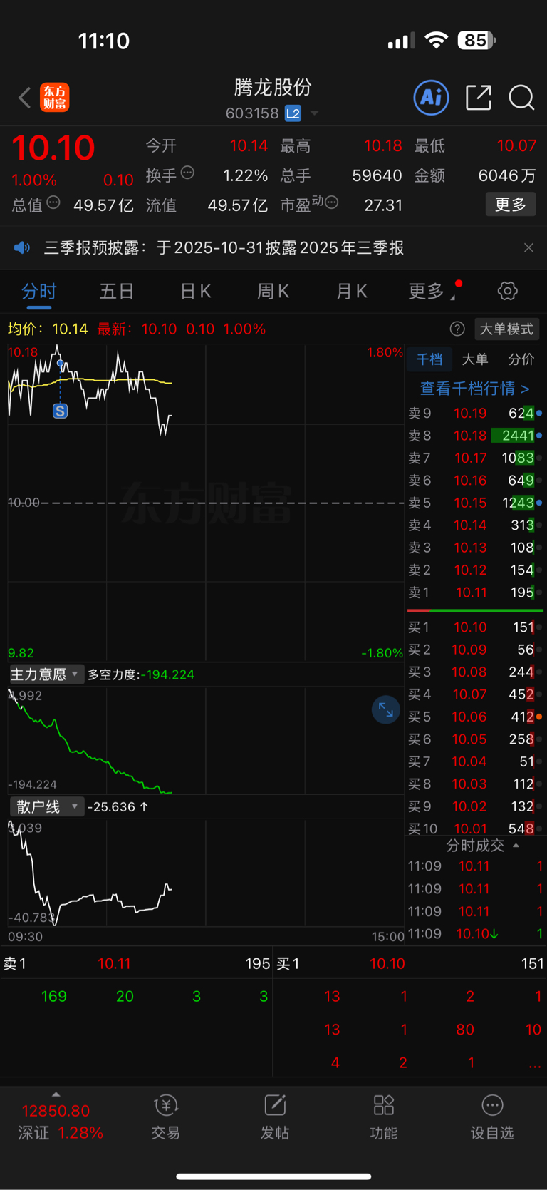 $腾龙股份(SH603158)$ 这个T的可以,下午接腾龙回来,赶紧跌下来
