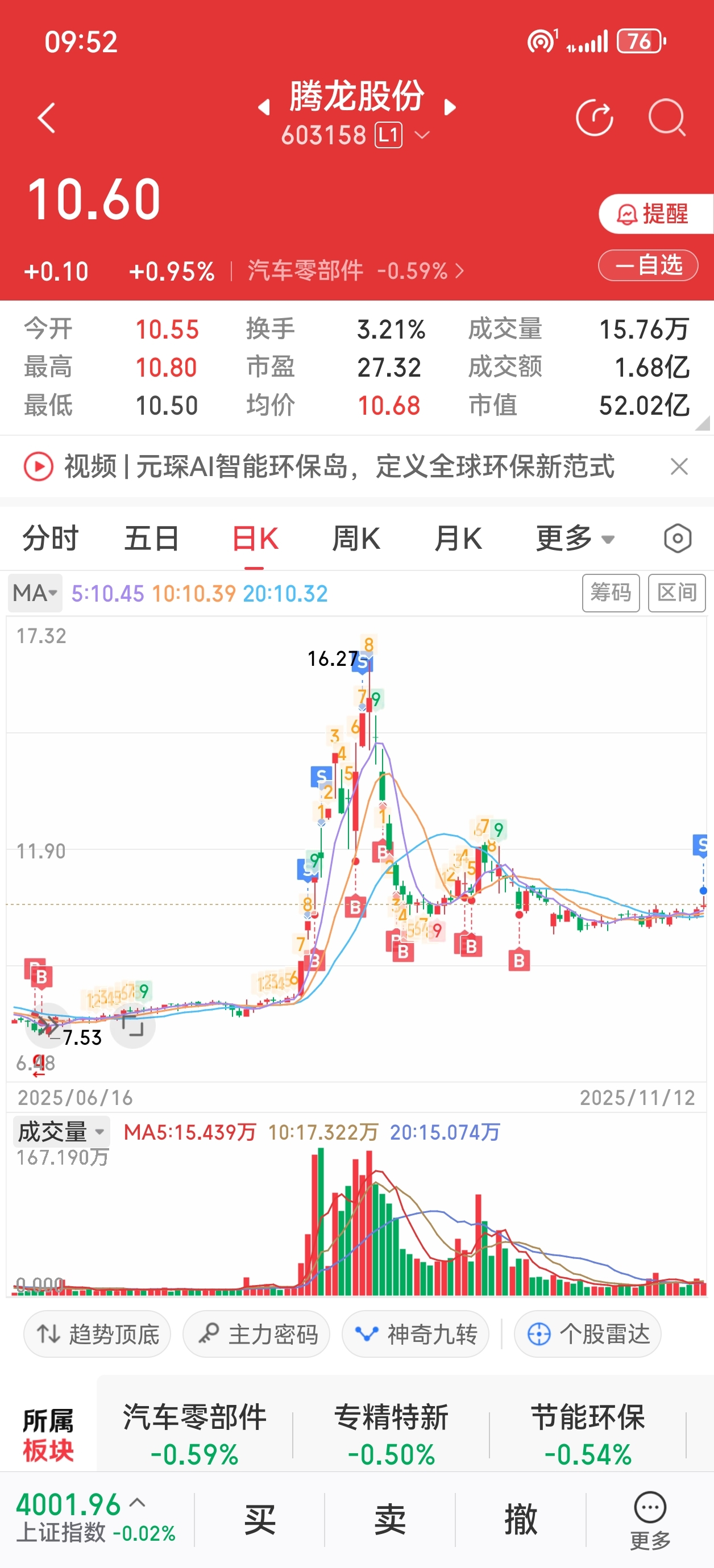 $腾龙股份(SH603158)$ 割肉了,换别的没意思。