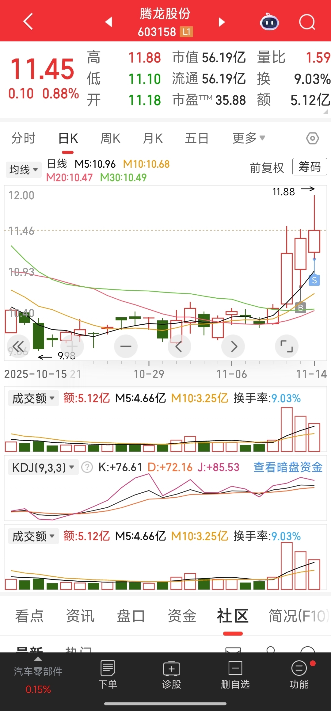 $腾龙股份(SH603158)$ 我走了,我怕了,虽然我很大概率卖飞