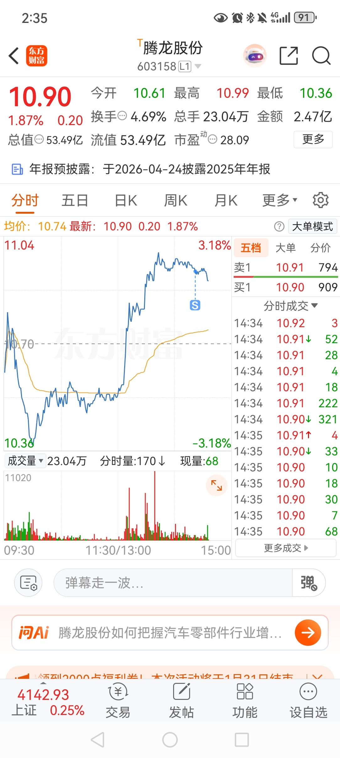 $腾龙股份(SH603158)$ 走了走了完全没搞头