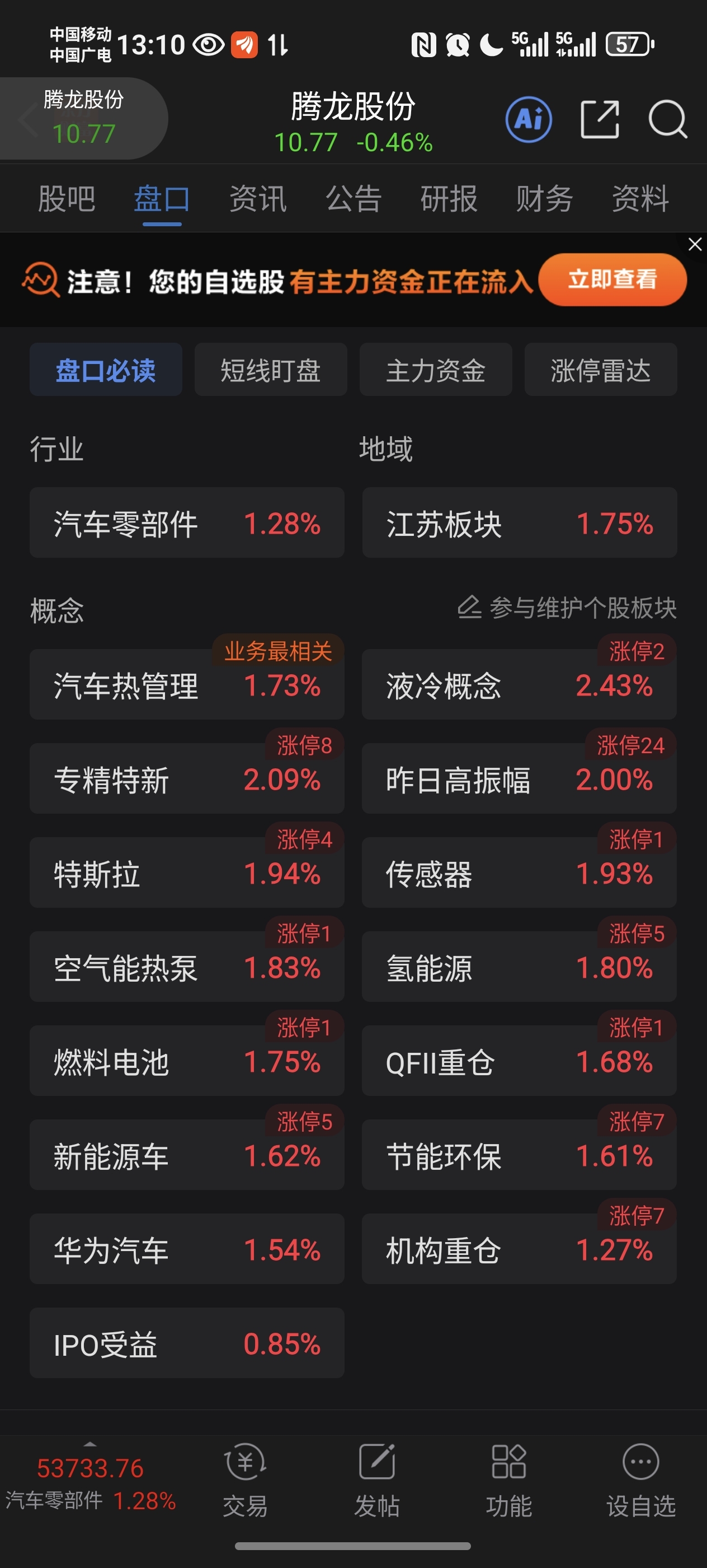 $腾龙股份(SH603158)$ 咋都不跟