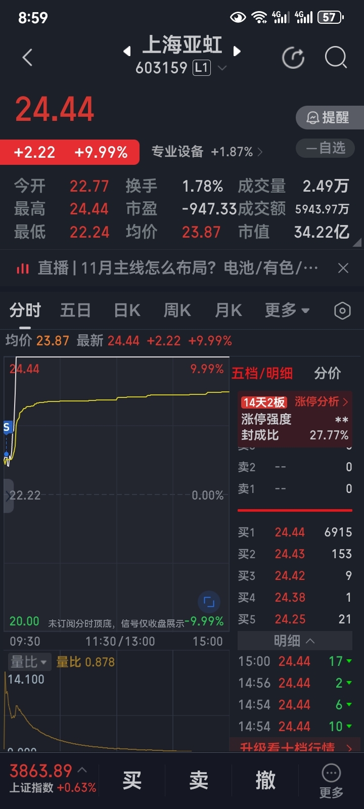 $上海亚虹(SH603159)$ 这勾庄看我卖了就涨停,拿在手上天天跌。。。。