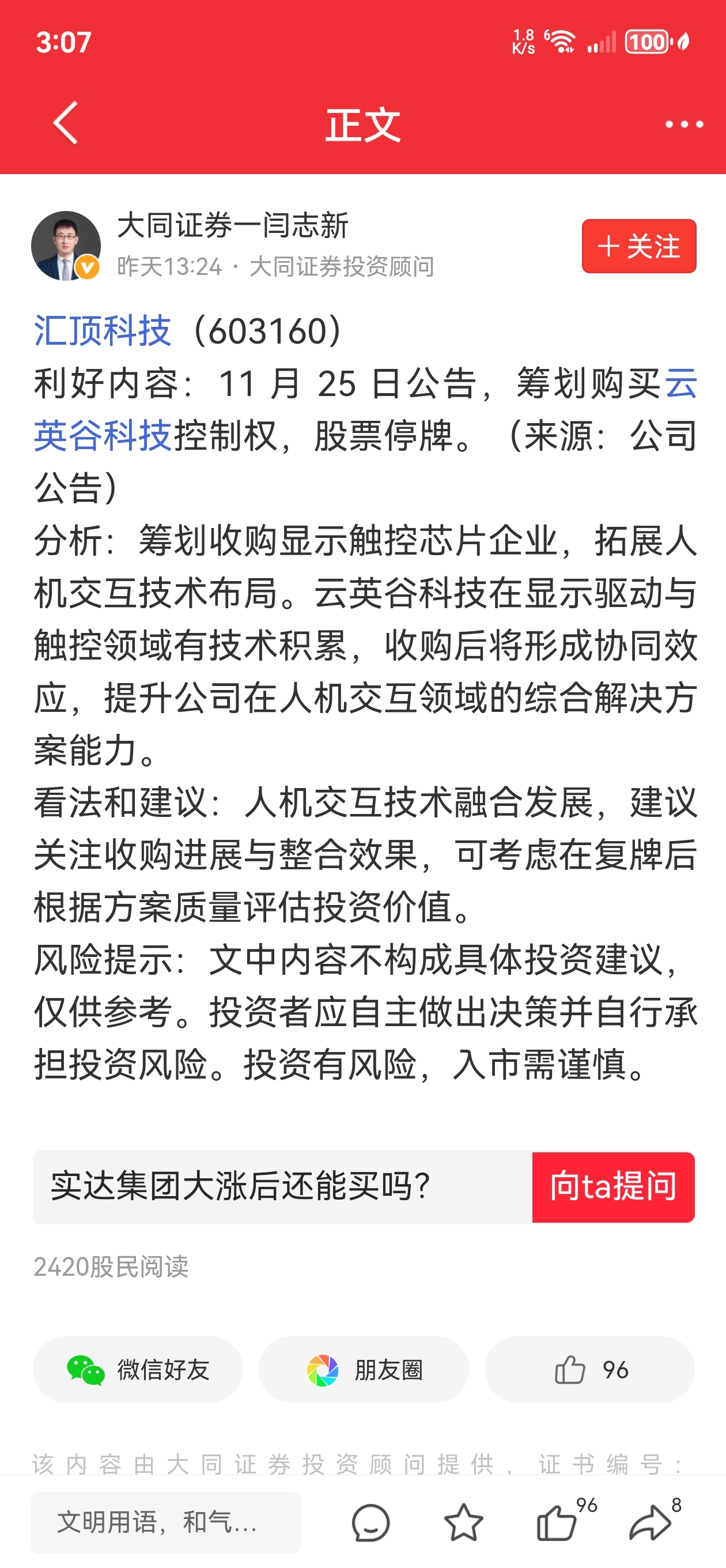 $汇顶科技(SH603160)$ 骗子一个,咋没有停牌呢?