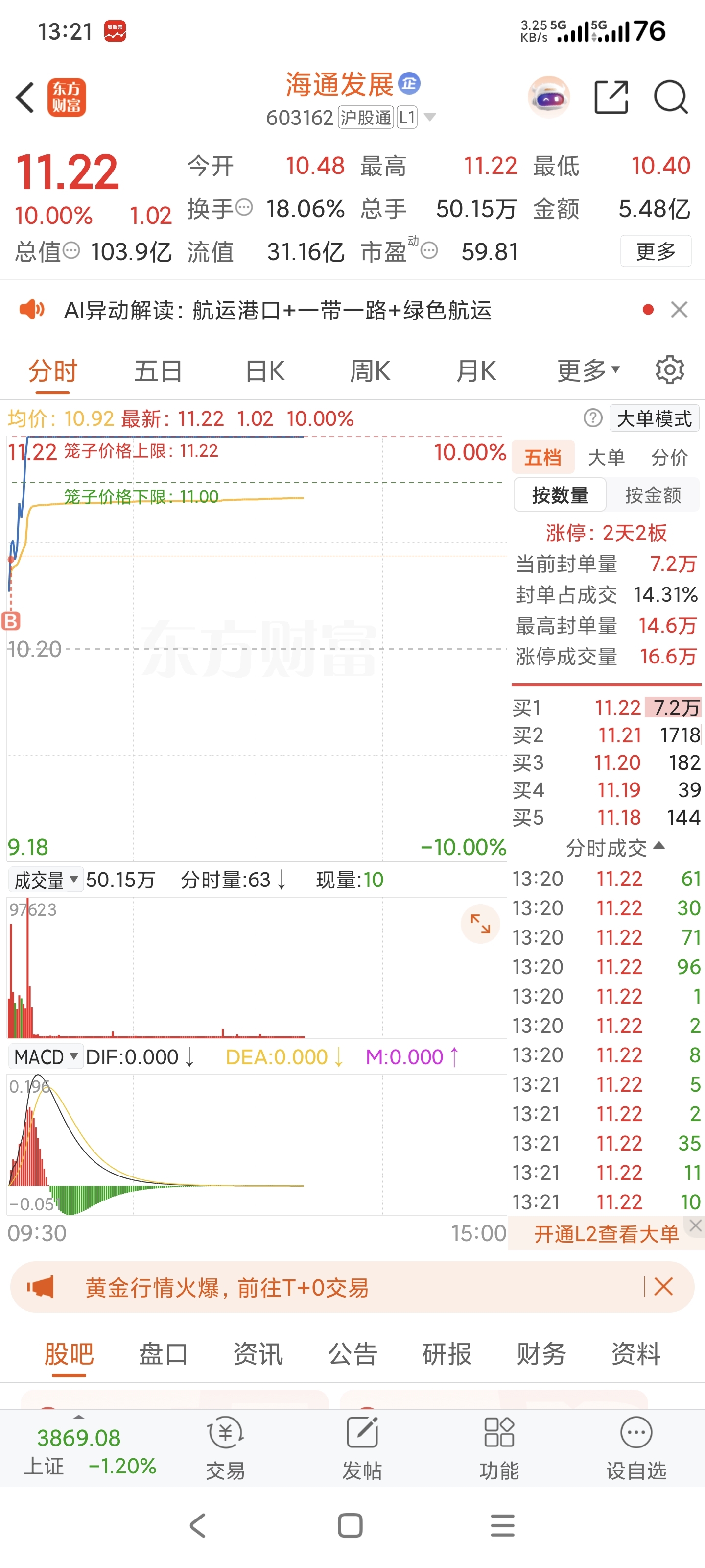 $海通发展(SH603162)$
