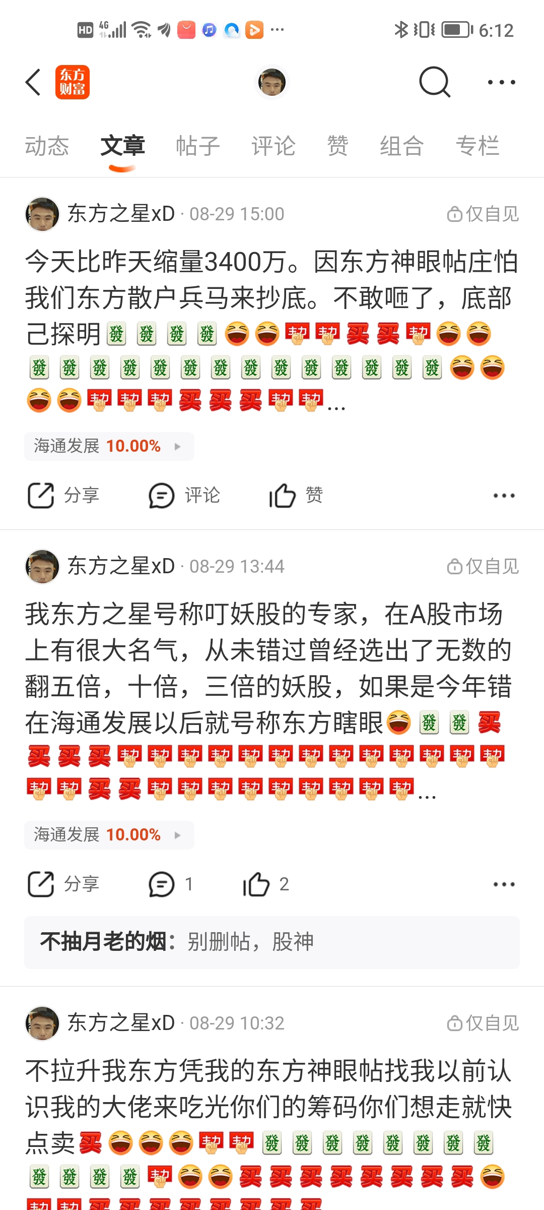 $海通发展(SH603162)$ 我可以骄傲的称自己为“东方神眼”了,当初建仓的时候洗的我们皮都掉了,我还以为这一次要失败了,要得称“东方瞎眼”了。不管怎么说,本次没有看瞎眼,还是启动了,更加验证了我的水平和技术越来越成熟。哎呀,虽然被你们洗下车了,但没有看走眼,说明我还是很厉害的。以后只要我自信一点点,我就能成为富豪了