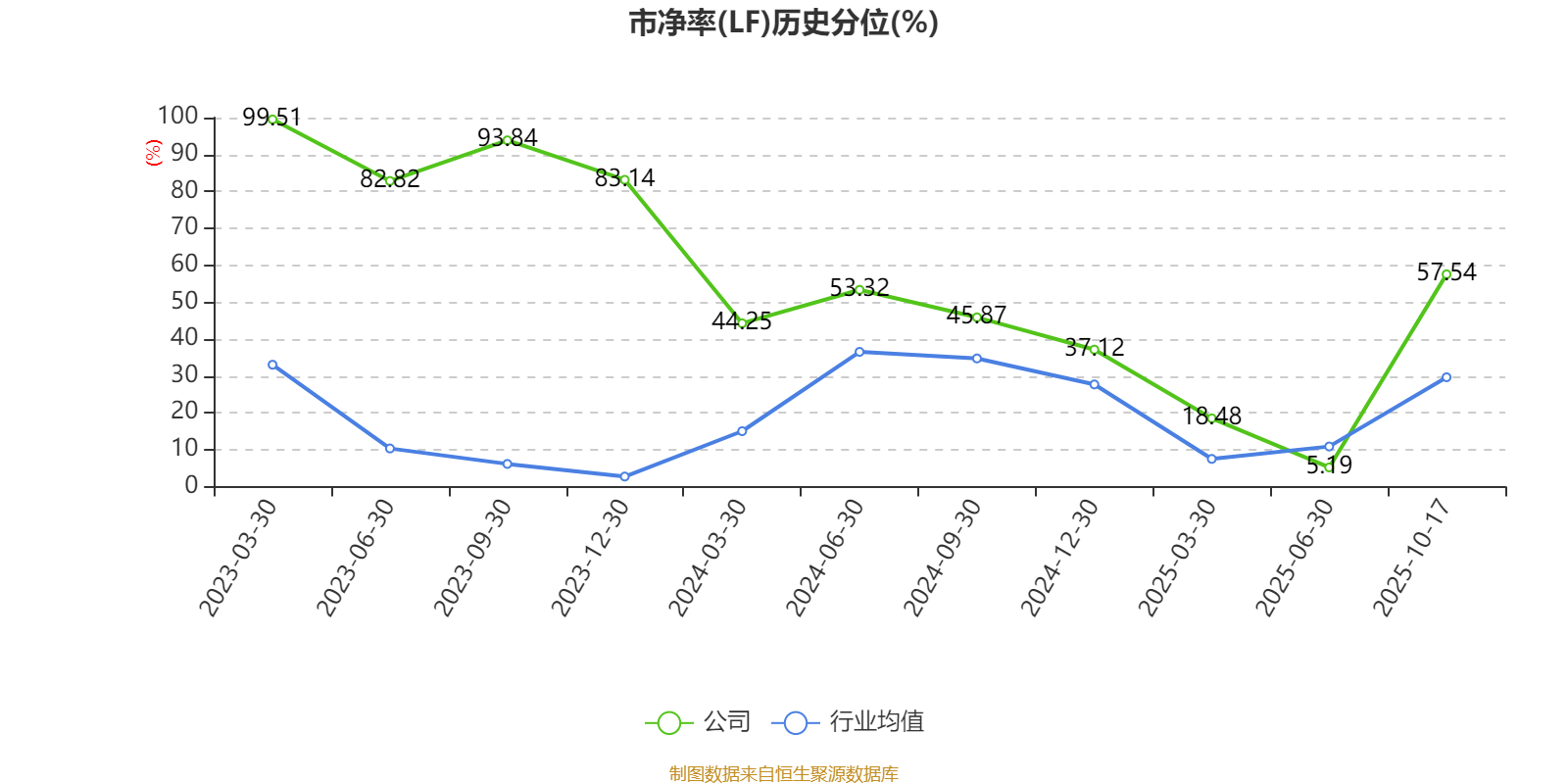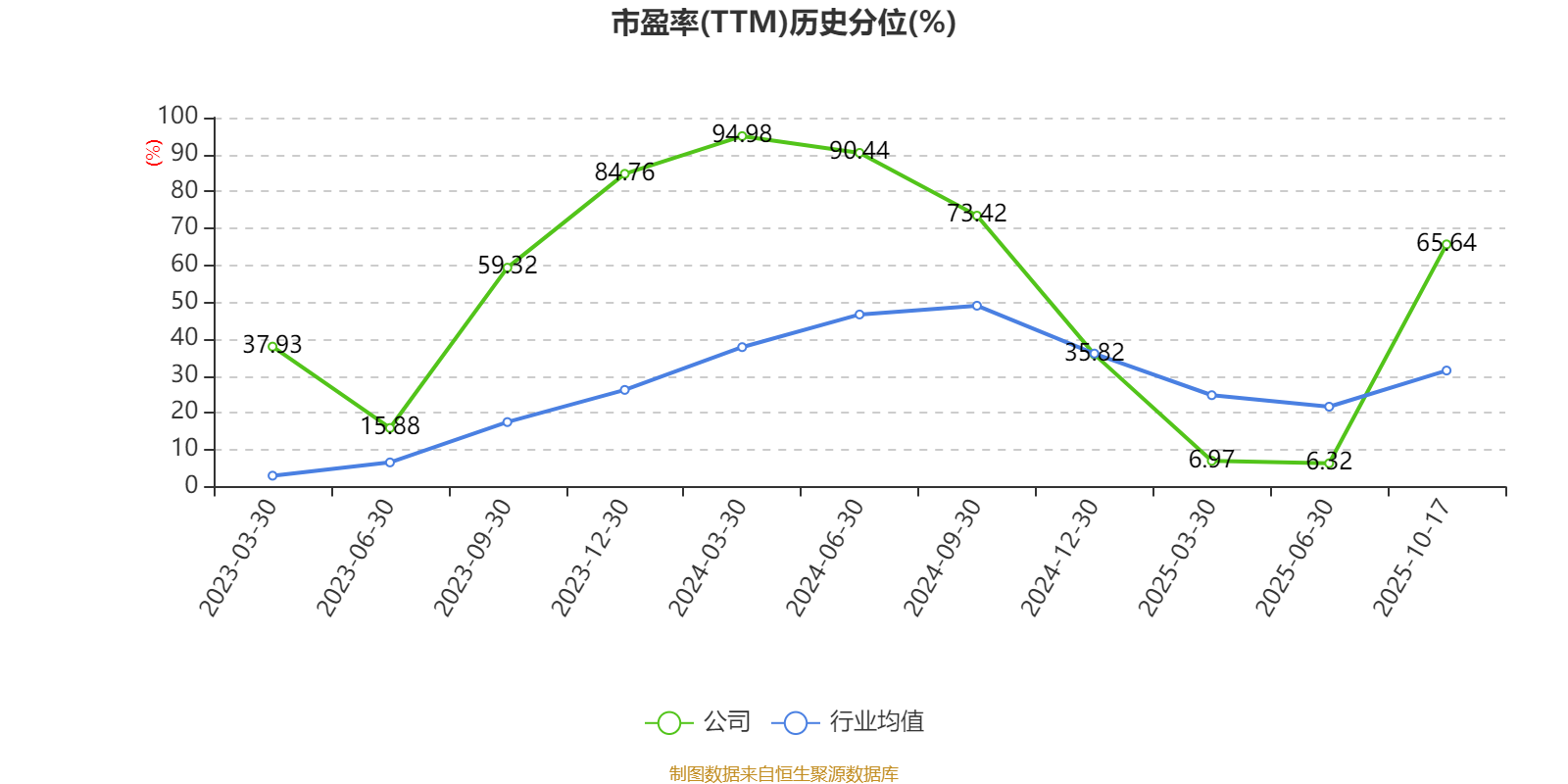 市盈率、市净率为负时,不显示当期分位数,会导致折线图中断。