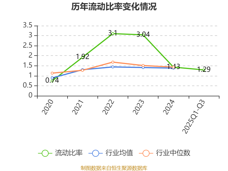 2025年前三季度,公司流动比率为1.29,速动比率为1.2。