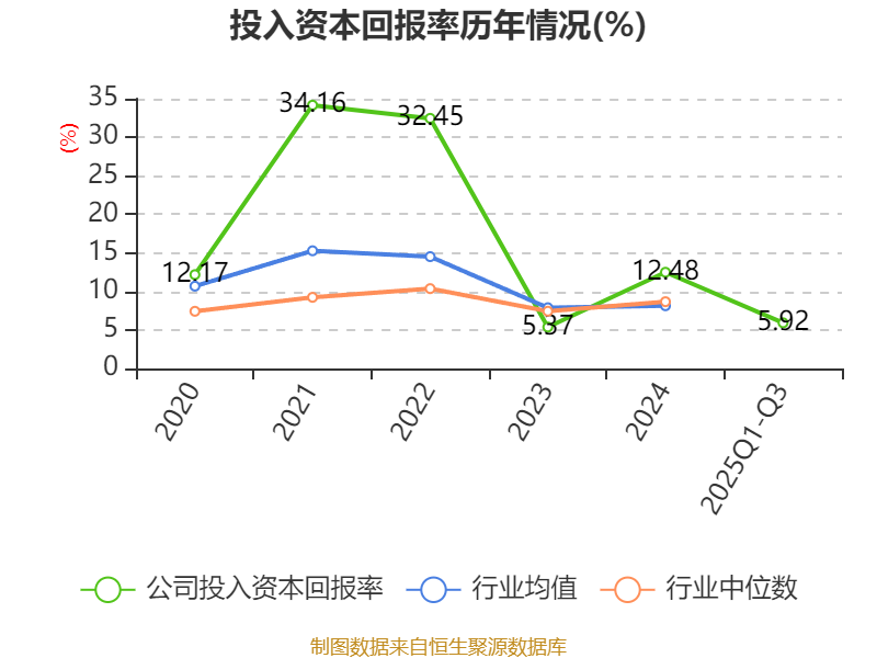盈利能力方面, 2025年前三季度公司加权平均净资产收益率为5.99%,同比下降4.82个百分点。公司2025年前三季度投入资本回报率为5.92%,较上年同期下降3.44个百分点。