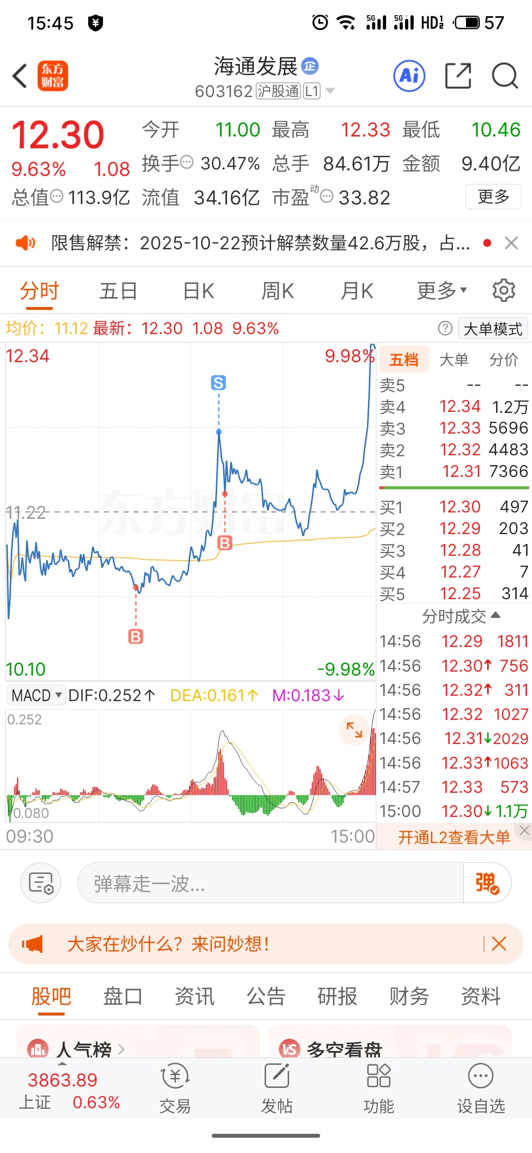 $海通发展(SH603162)$ 不知道啊,就觉得今天有感觉。几个月的埋伏终于就结果了