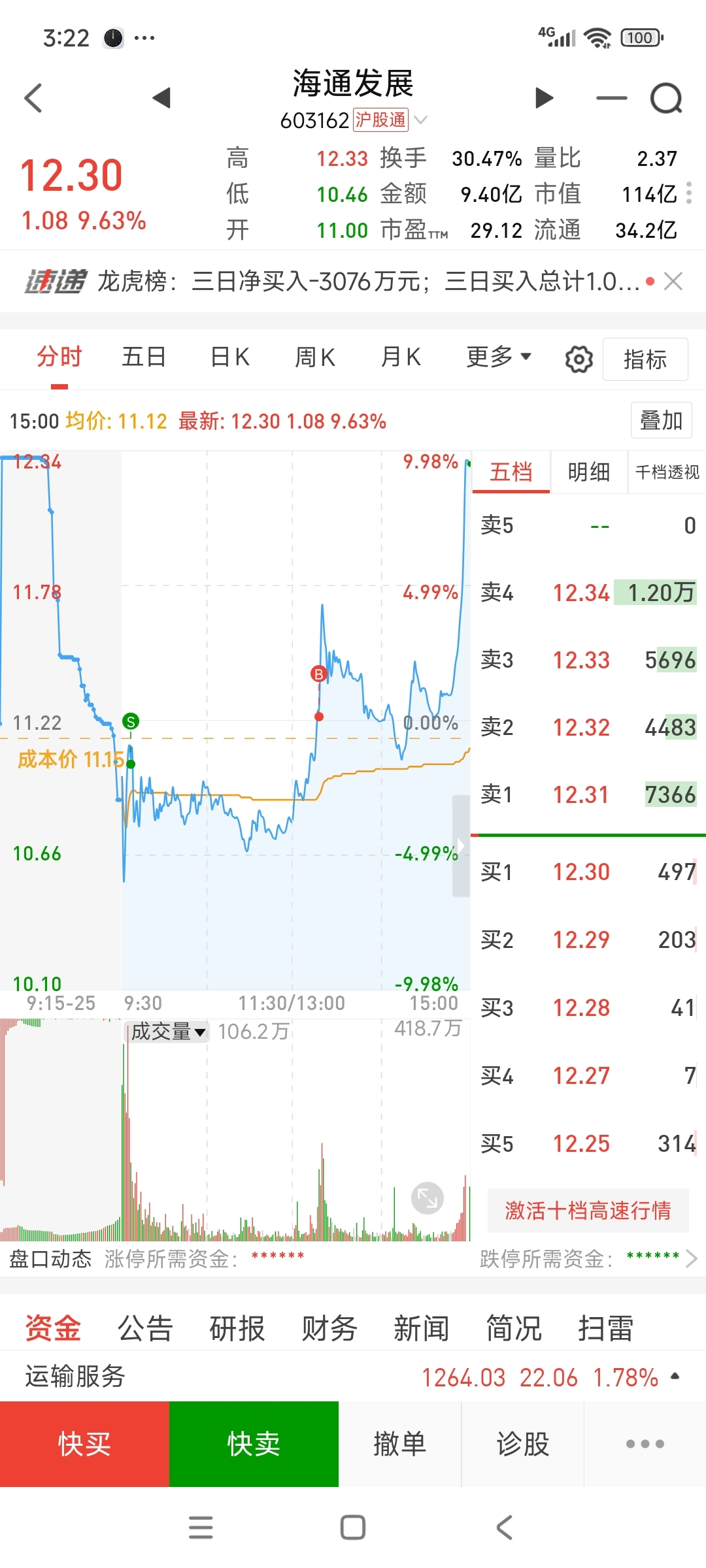 $海通发展(SH603162)$ 上午卖了,下午稀里糊涂的又买了回来虽然明天大概率是吃面,但是今天好歹不亏不是吗