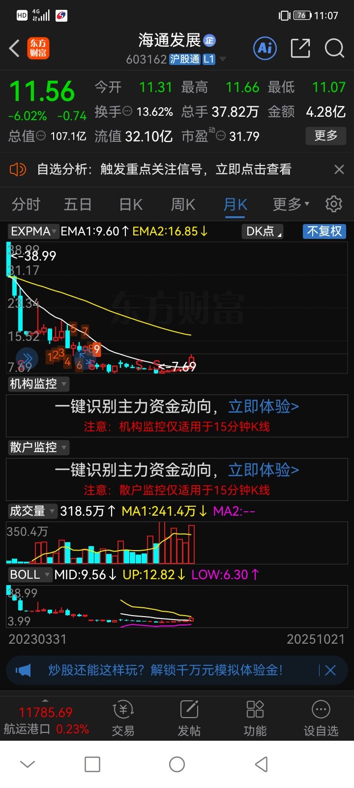 海通发展股价还趴在底部加机构扫货看高一线17元加仓持股待涨