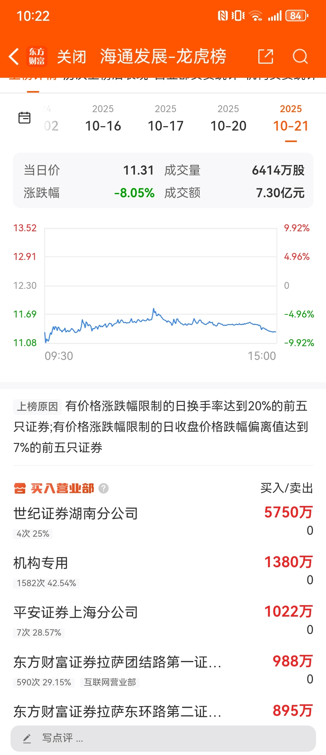 $海通发展(SH603162)$ 这股最近走的这么糟糕,问题就出在买一上,一个流通盘那么小的票,买了5-6千万,主力不往死里干才怪,啥时候割肉啥时候拉,坐轿子也得差不多,这个买一太过份了