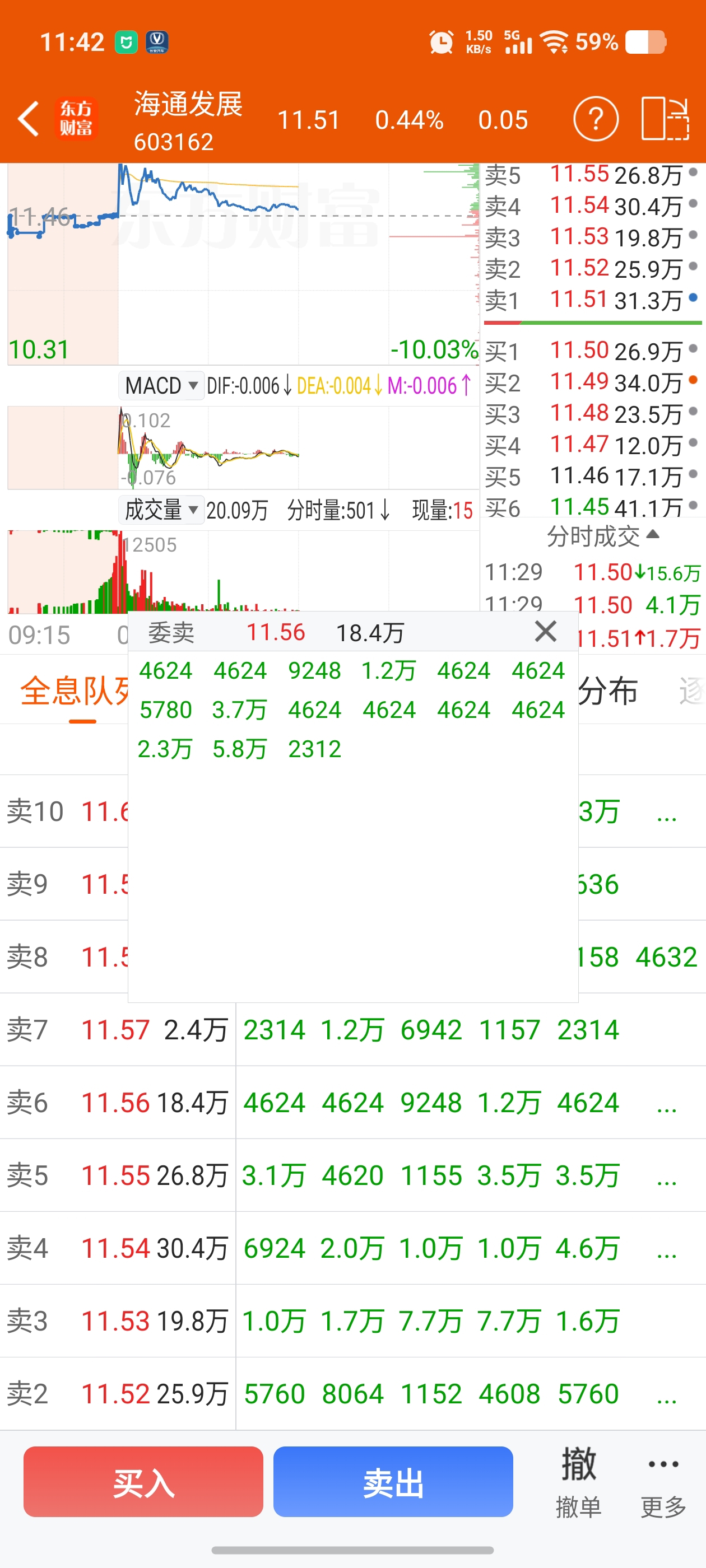 $海通发展(SH603162)$ 这上面全是同样手的卖单 这是量化的手笔吧