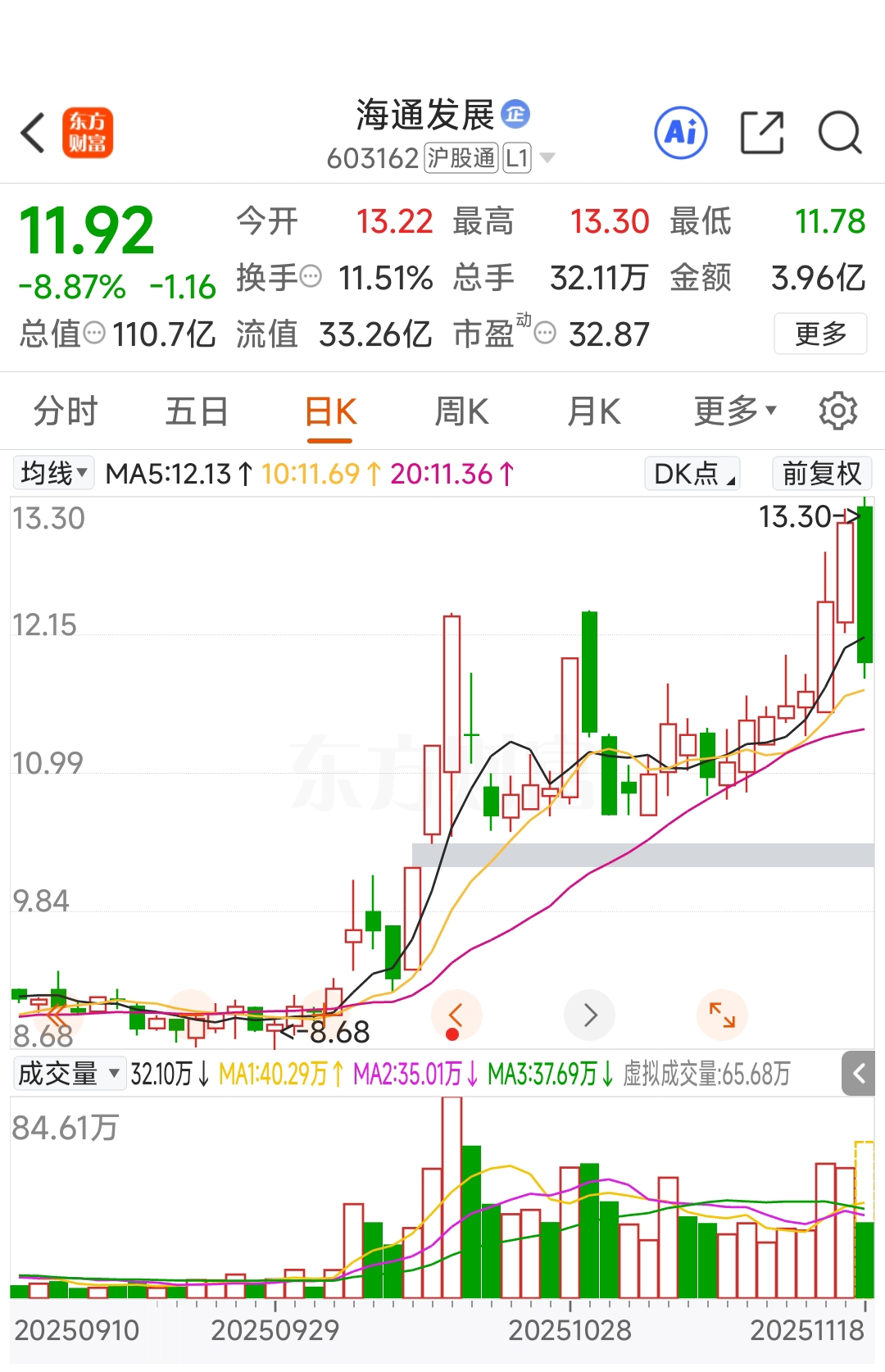 $海通发展(SH603162)$ 福建+航运+平潭+统一大市场,7连阳回踩10日线,绿盘买入。西芒杜项目即将投运,作为铁矿石贸易长航线,将提振海运周转需求,2025-27每股收益0.37/0.84/1.11元