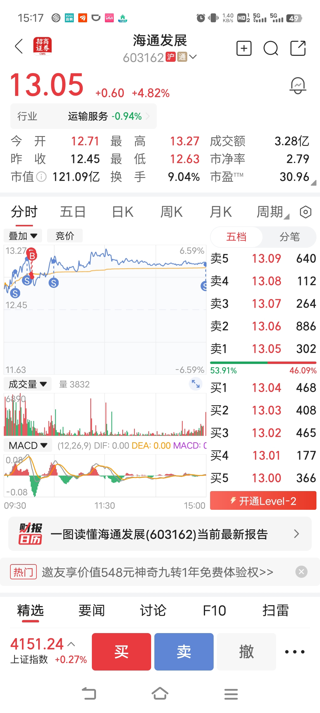 $海通发展(SH603162)$ 留个底仓,感谢主力