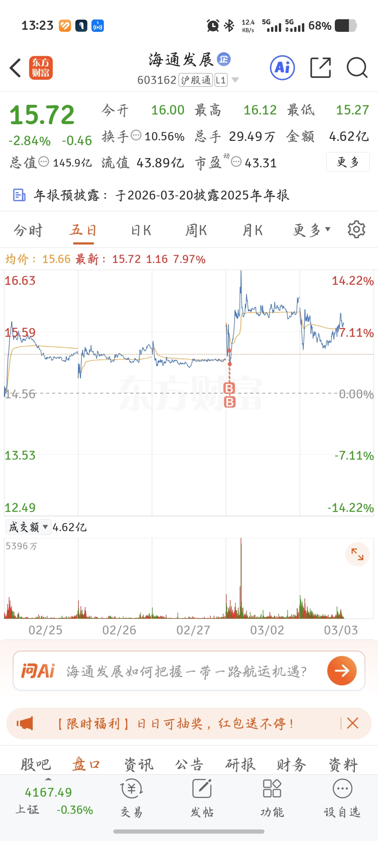 $海通发展(SH603162)$ 真是了,选个
