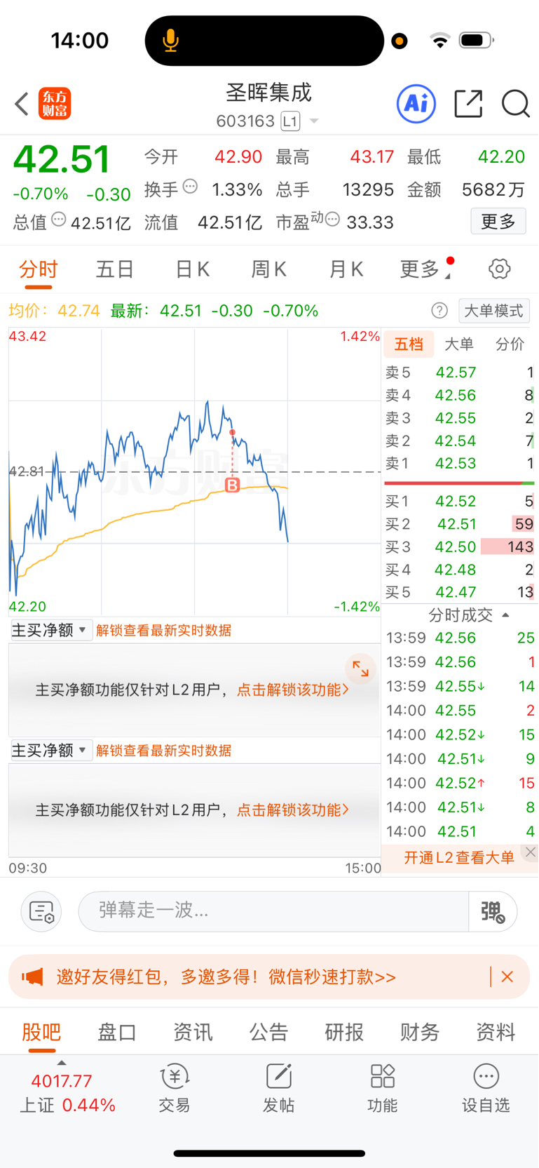 $圣晖集成(SH603163)$ 对不起是我买蹦了