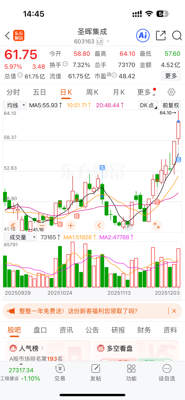 $圣晖集成(SH603163)$ 62走了留下的发财