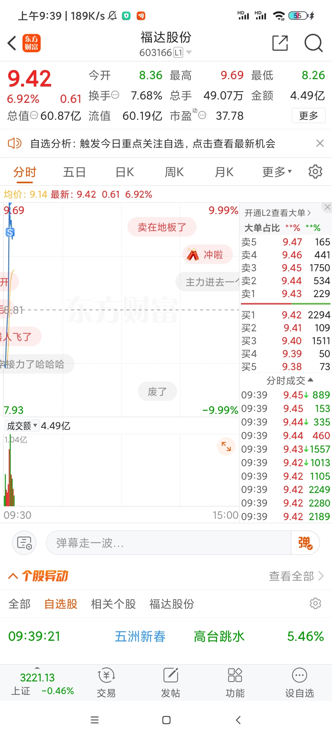 $福达股份(SH603166)$ 涨停卖了