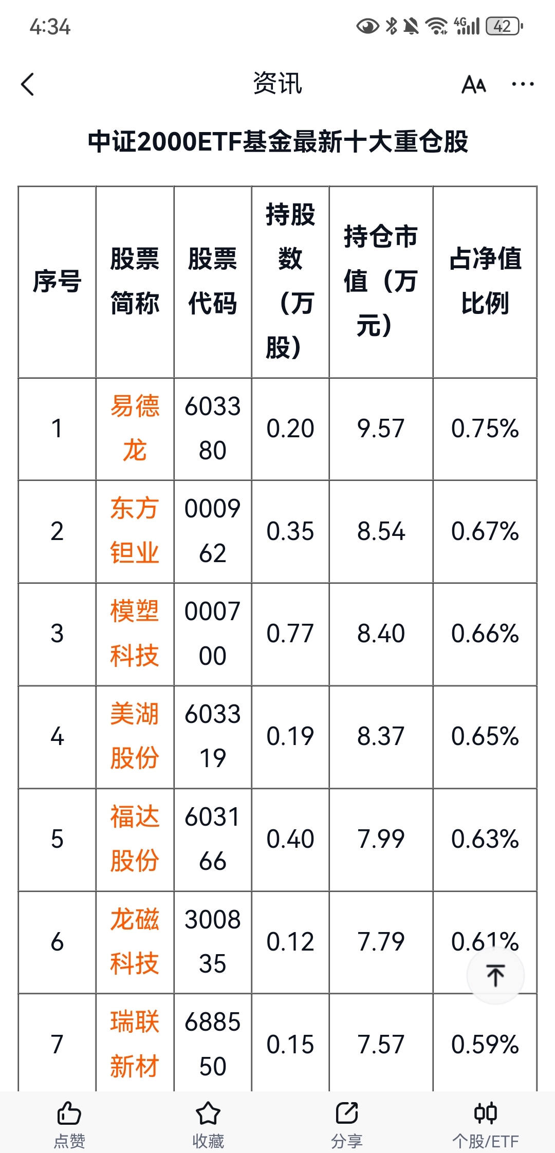 $福达股份(SH603166)$ 这个基金重仓前十股,其中福达持股0.4万股,市值7.99万。是我理解的这样吗?是买了福达7万多,还是7亿多?是4000万股,还是4000股?我怎么不敢看懂呢…各位看一下是不是他单位亿打成万了?
