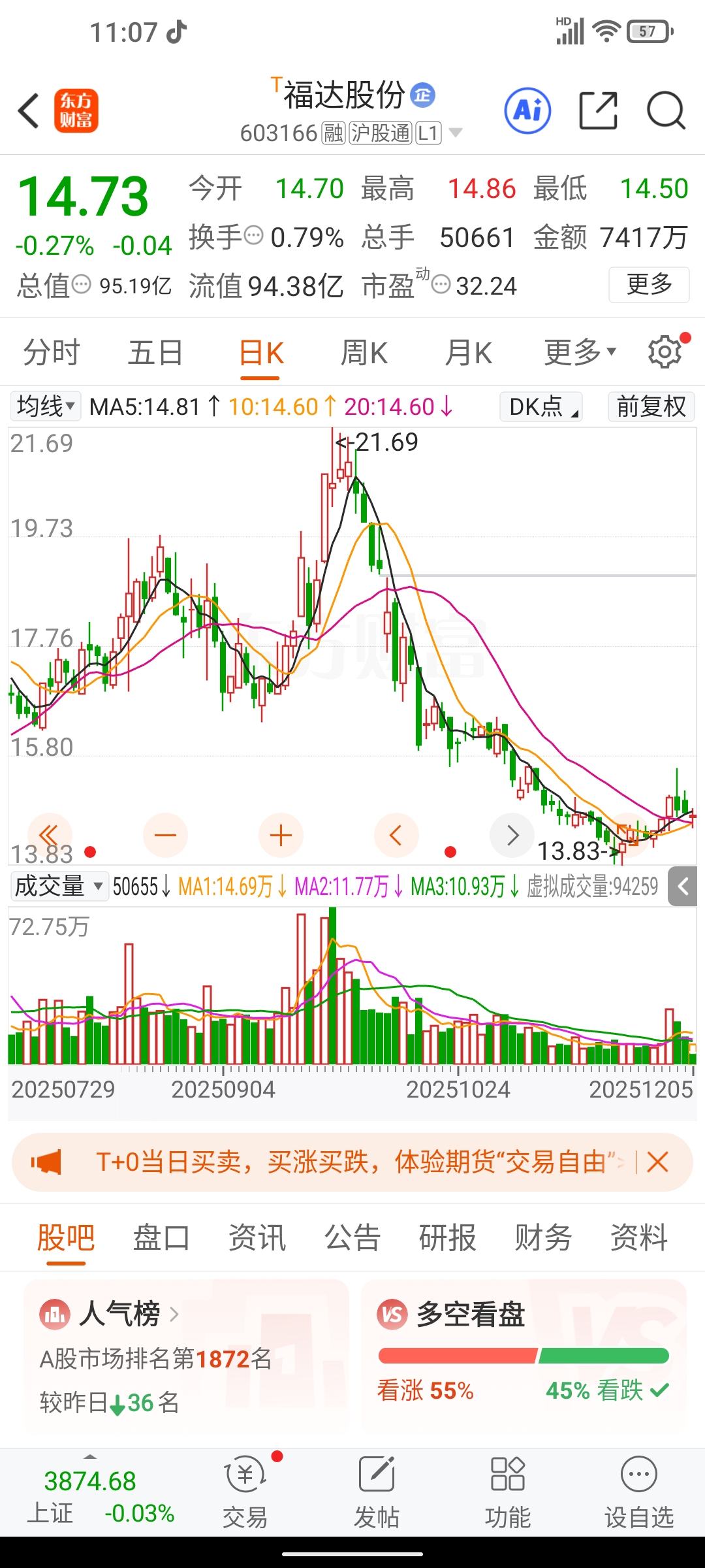 $福达股份(SH603166)$ 哦哦哦这走势真壮观啊