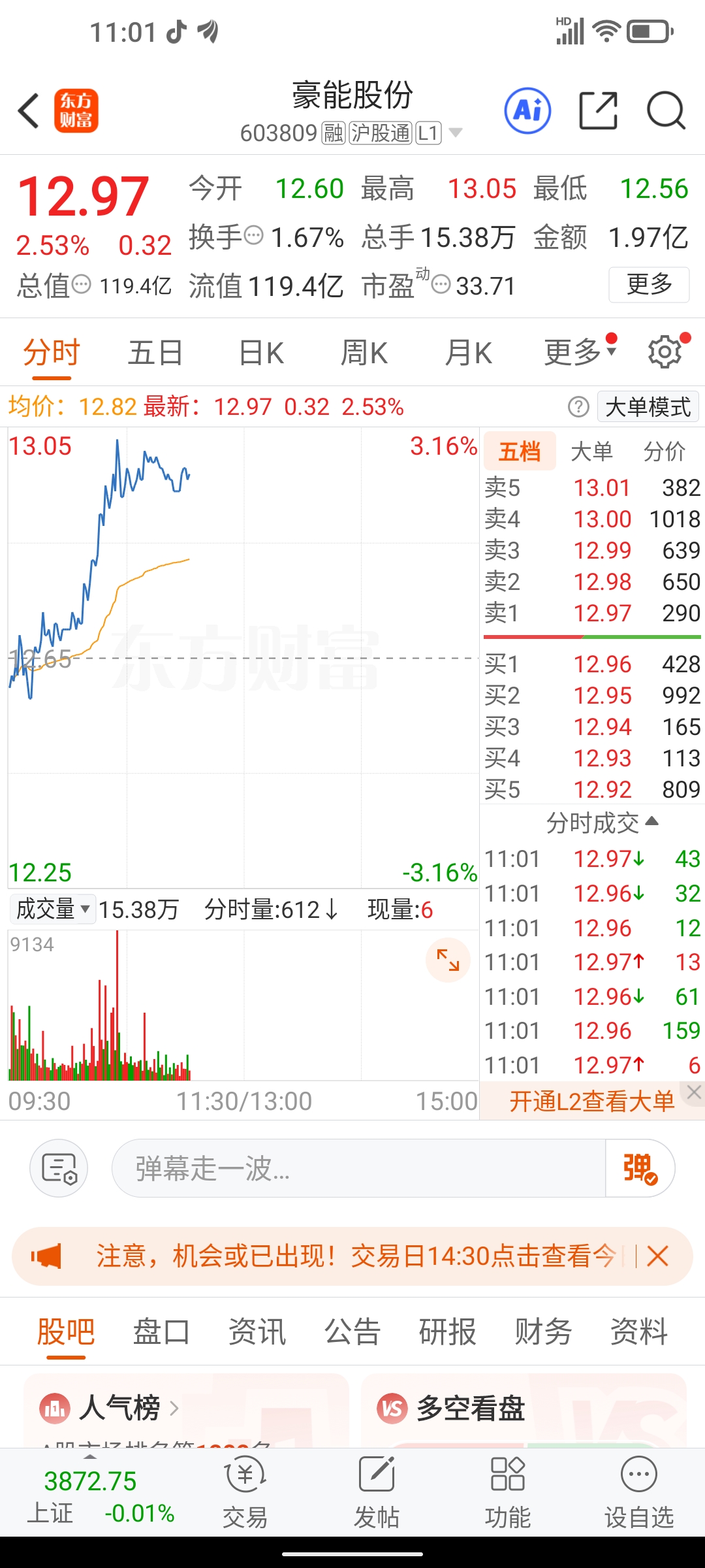 $福达股份(SH603166)$ 今天豪能都两个点了