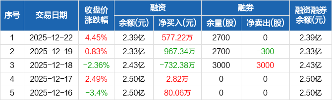 福达股份:融资净买入577.22万元,融资余额2.39亿元(12-22)