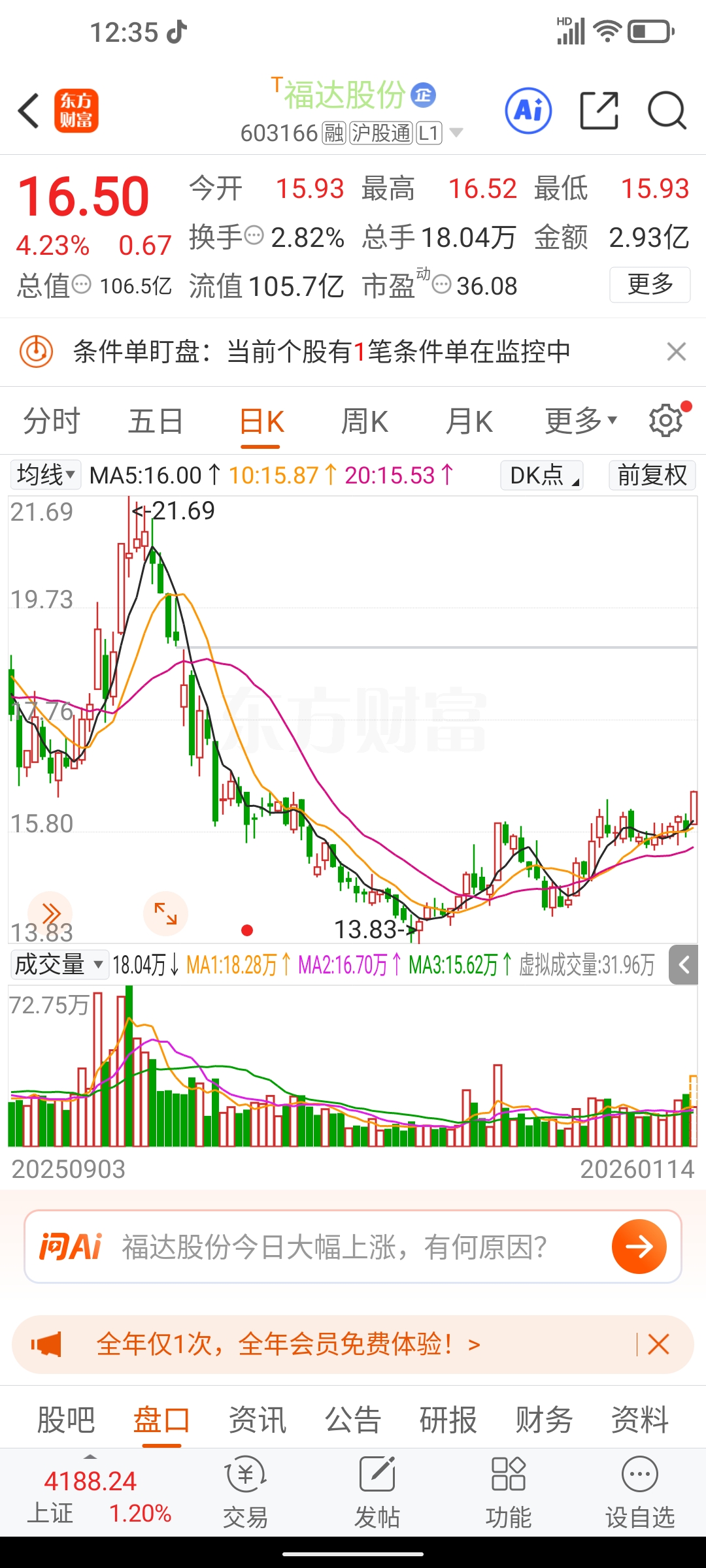$福达股份(SH603166)$ 涨那一点又开始叫唤了