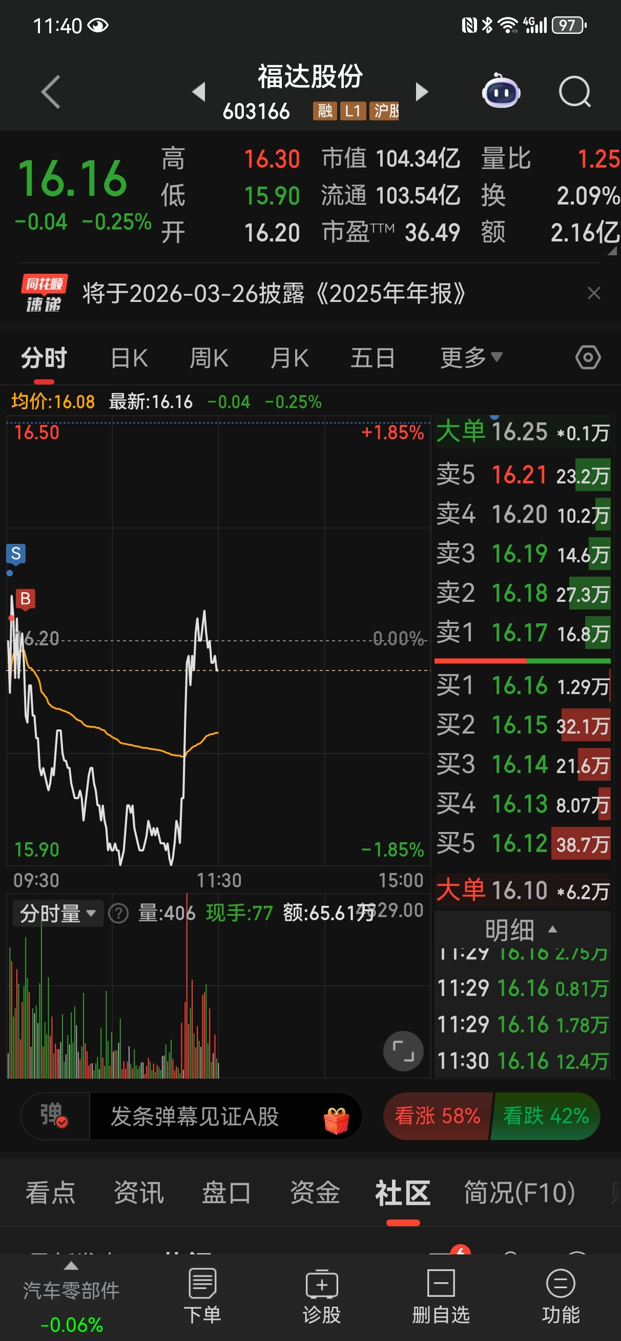 $福达股份(SH603166)$ 做T如履薄冰,生怕卖飞了买不回来