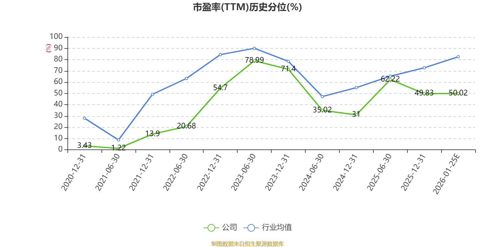 以本次披露业绩预告均值计算,公司近年市盈率(TTM)图如下所示:
