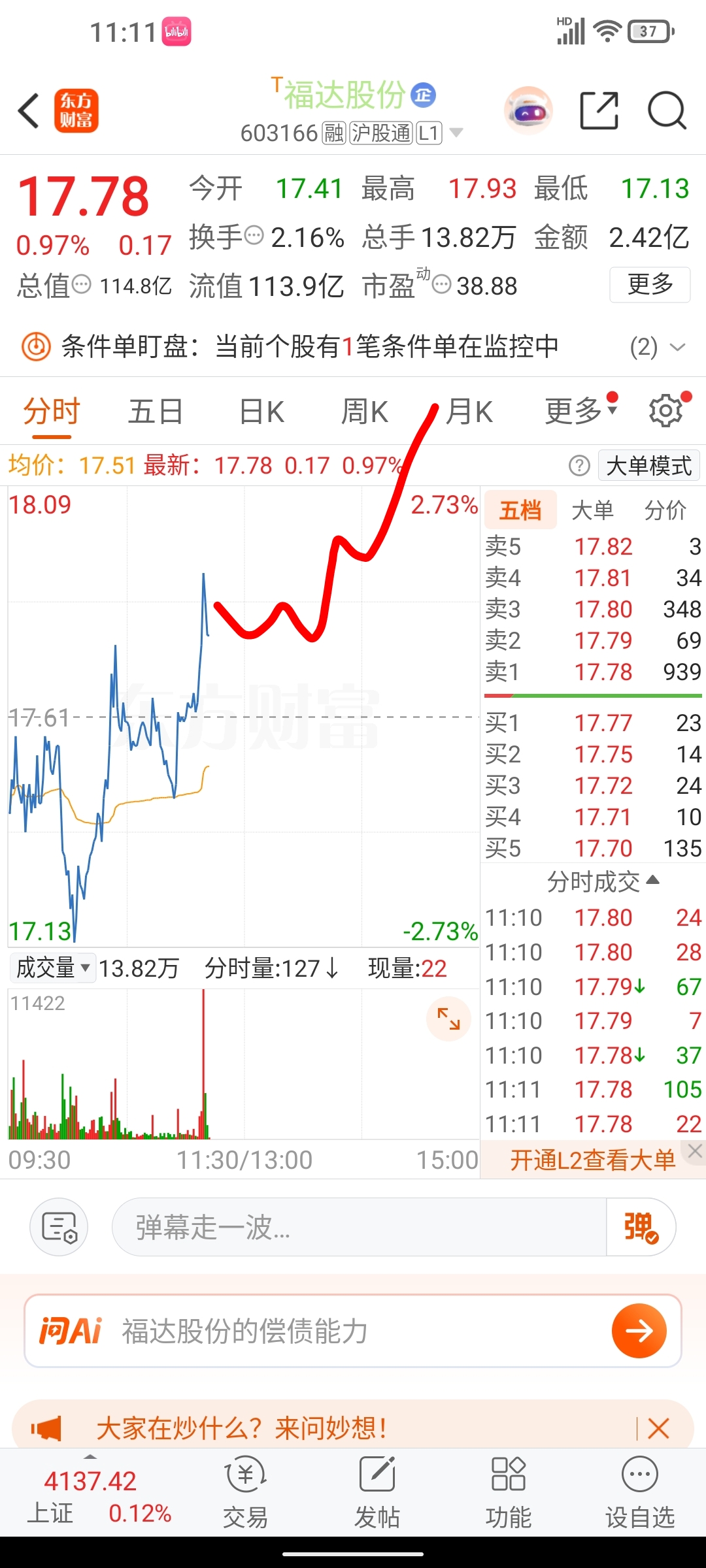 $福达股份(SH603166)$ 首先我们假设福达今天可以这么涨上去