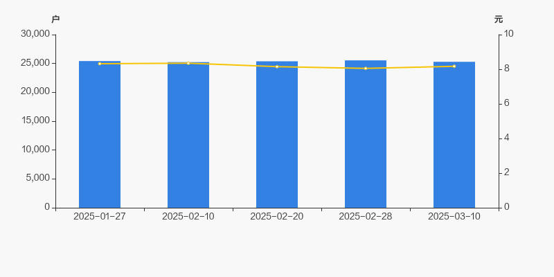 2025年1月27日至今,公司股东户数有所下降,区间跌幅为0.52%。2025年1月27日至2025年3月10日区间股价下降1.80%。