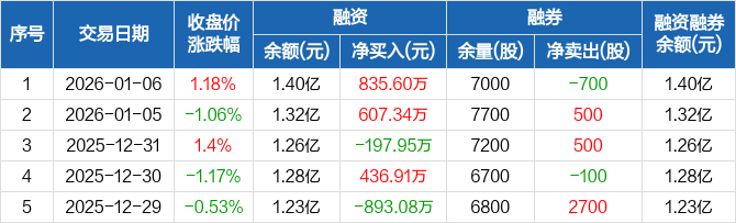 渤海轮渡:融资净买入835.6万元,融资余额1.4亿元(01-06)