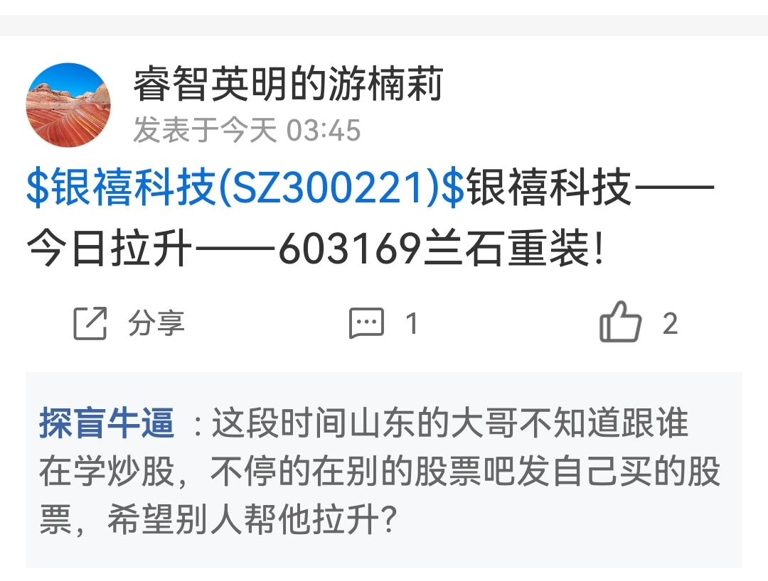 温馨提示: 1.根据《证券法》规定,禁止编造、传播虚假信息或者误导性信息,扰乱证券市场;2.用户在本社区发表的所有资料、言论等仅代表个人观点,与本网站立场无关,不对您构成任何投资建议。用户应基于自己的独立判断,自行决定证券投资并承担相应风险。《东方财富社区管理规定》