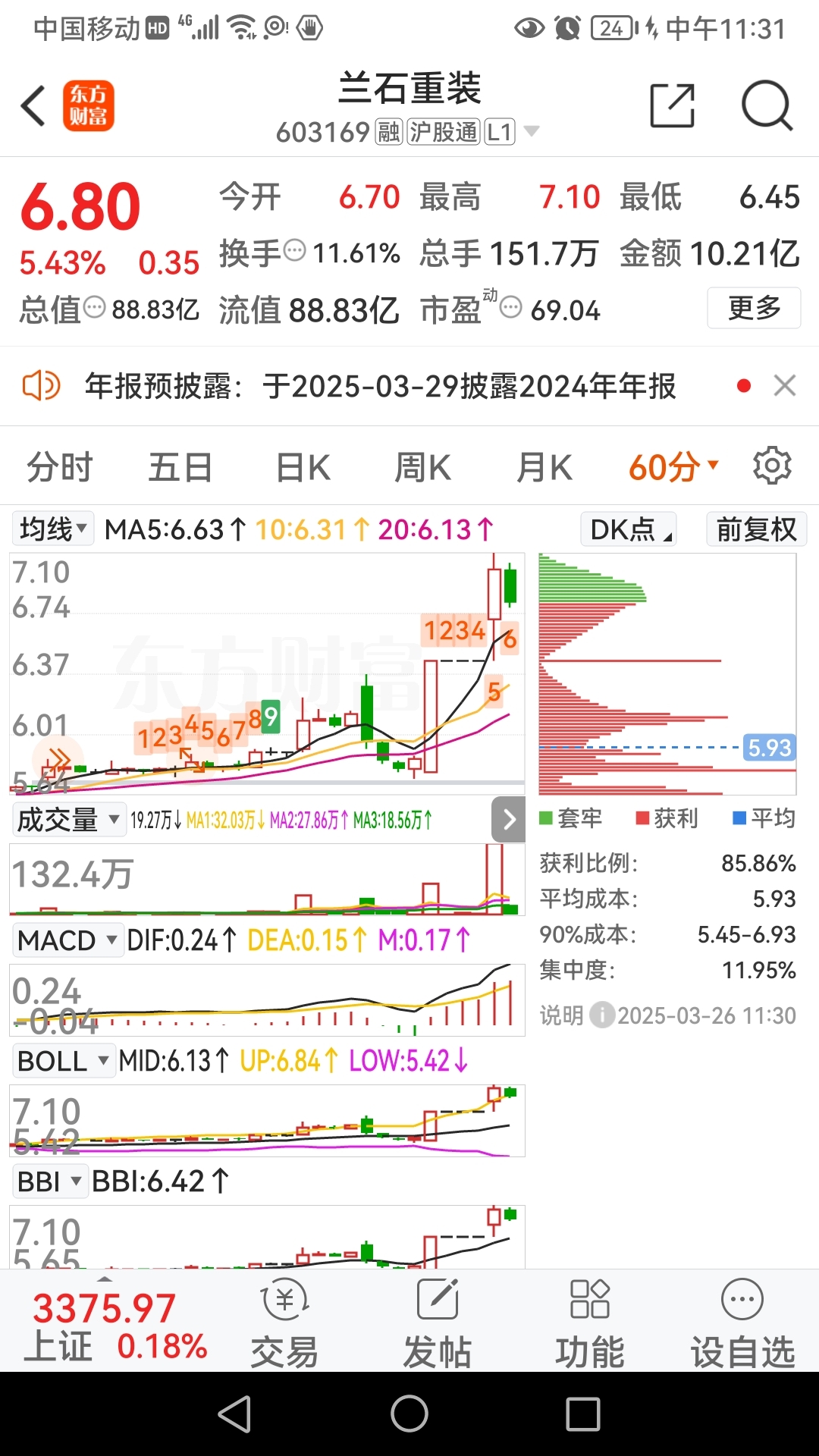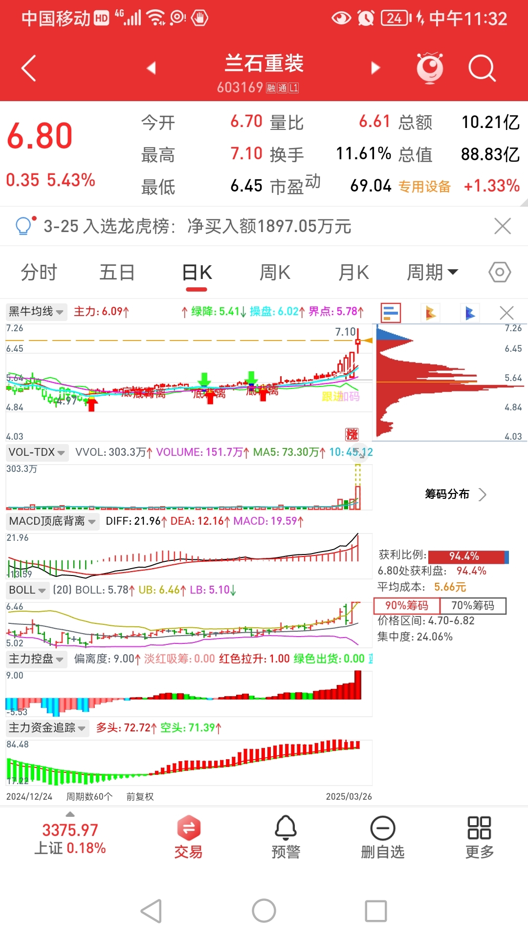 竞价分时不太好,竞价就给整出去[微笑]...卖早了点;早盘封了烂板,目前短线很强