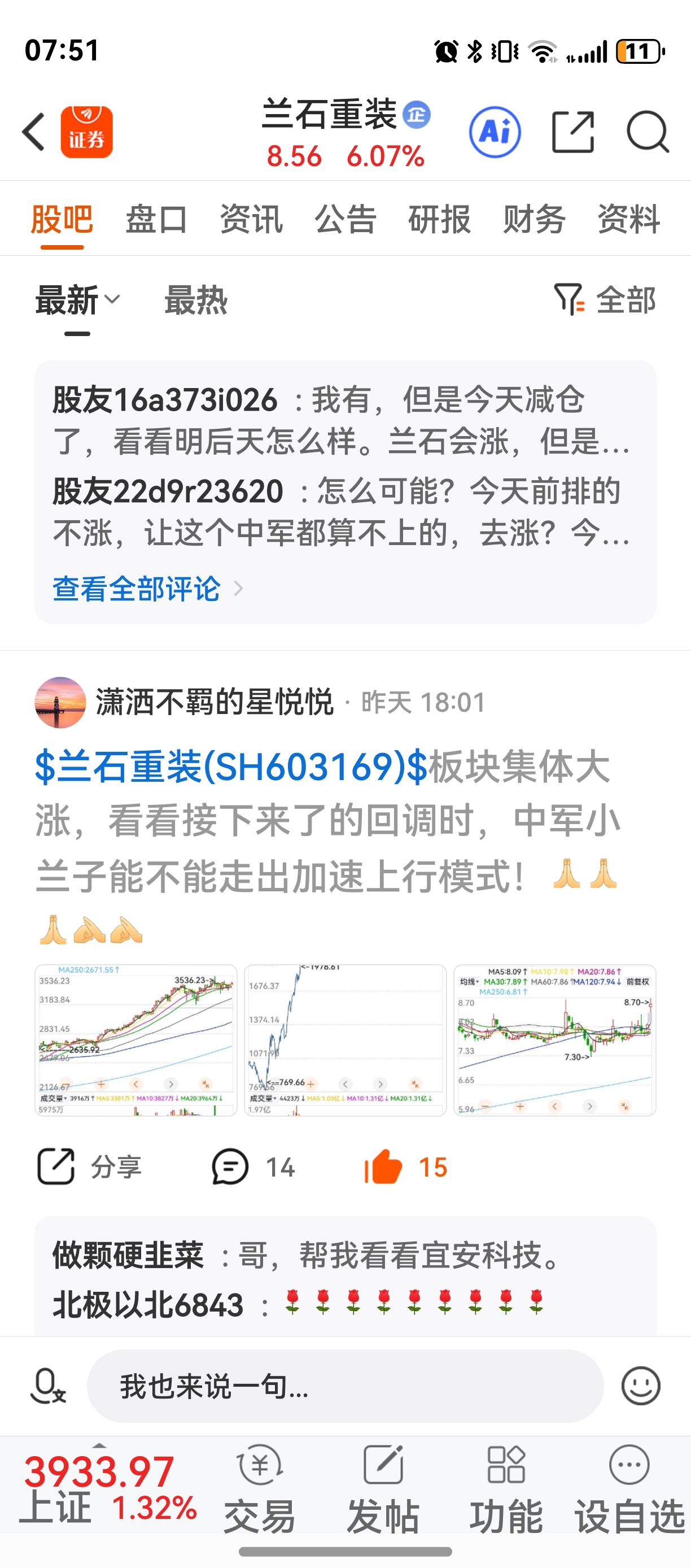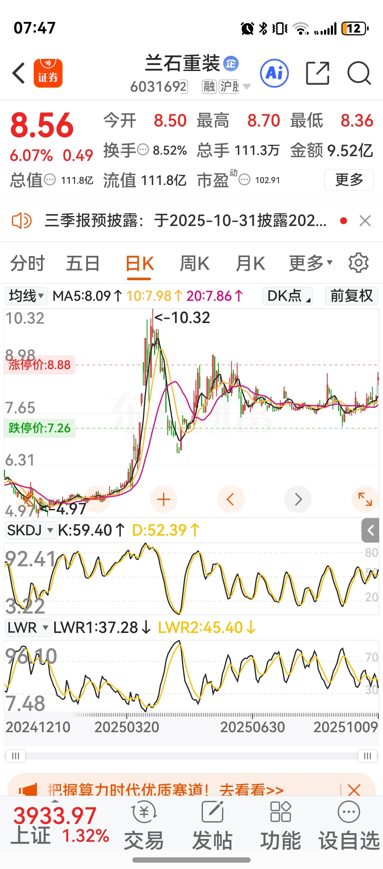 $兰石重装(SH603169)$ 哈哈兄弟们小兰子虽说概念少,但可以确定都是接下来该炒的热门了(另外短期还有炒过前近高10.32的预期)那些高位横盘的市盈率炒至几百的都要远离,信号已经发出来不给融资融券了,若有希望兄弟们注意安全谨慎操作控制仓位!