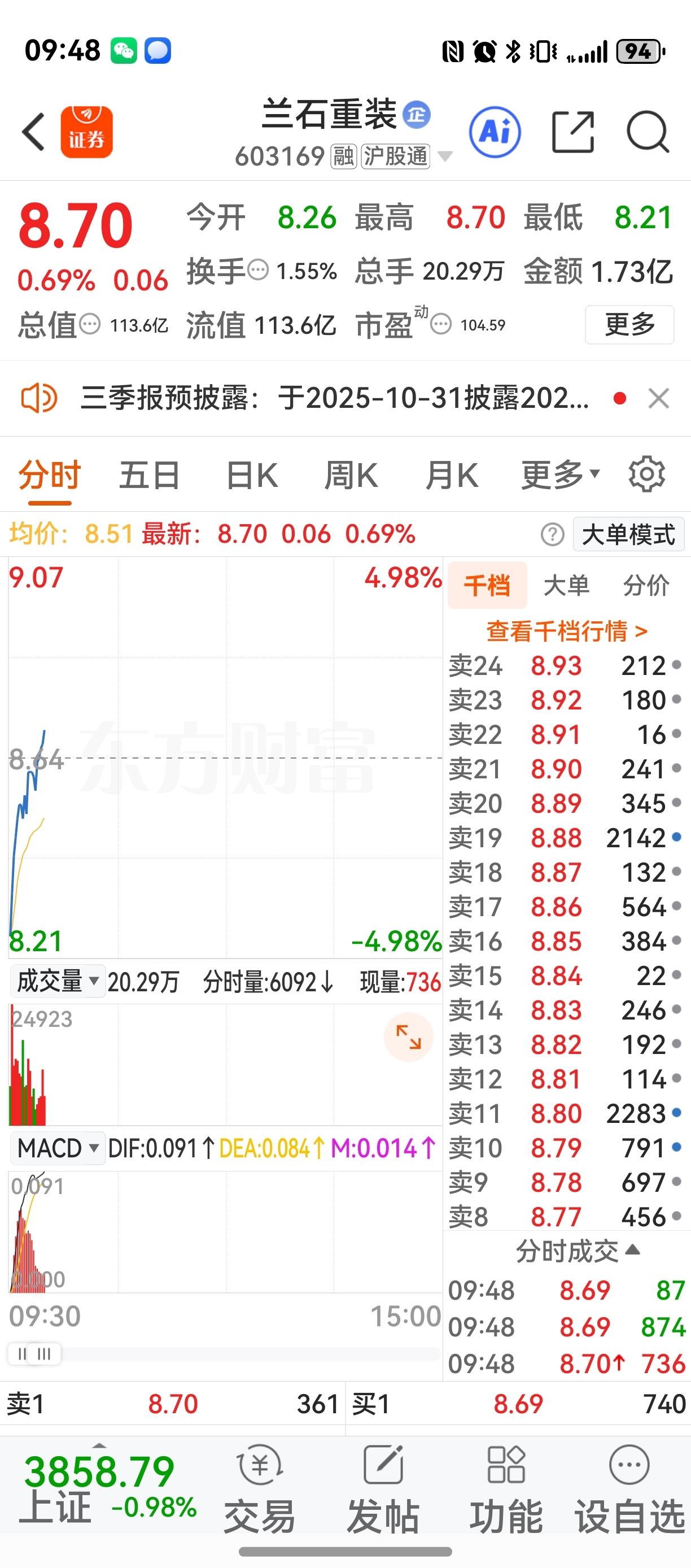 $兰石重装(SH603169)$ 哈哈让一帮见小利的看看,咱小兰子主力哥实力如何!