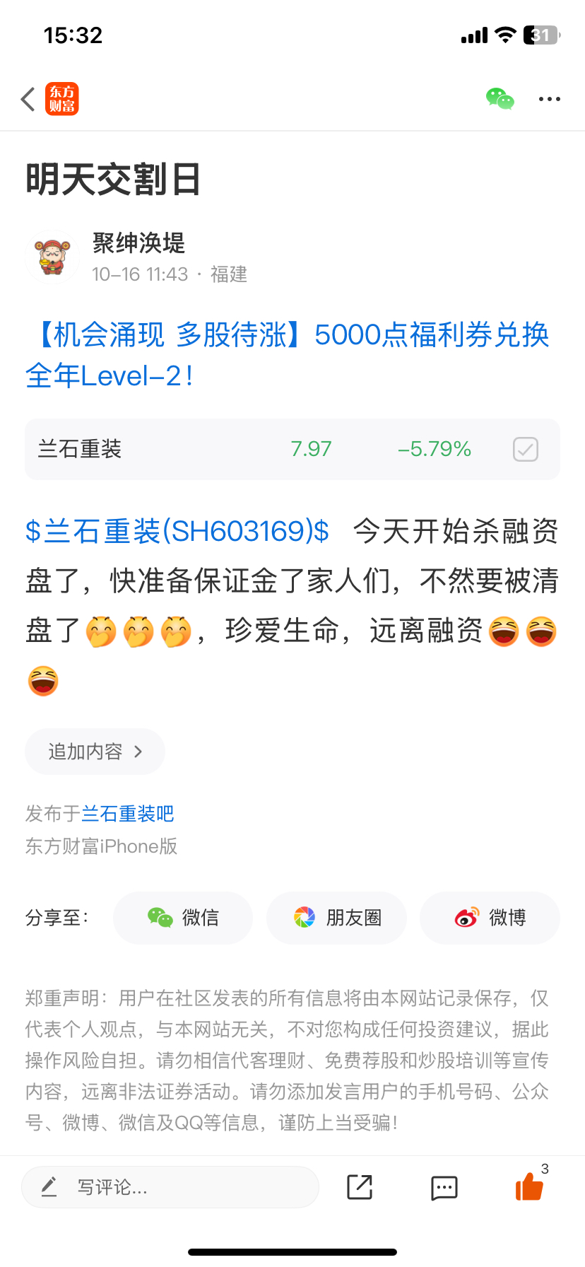 温馨提示: 1.根据《证券法》规定,禁止编造、传播虚假信息或者误导性信息,扰乱证券市场;2.用户在本社区发表的所有资料、言论等仅代表个人观点,与本网站立场无关,不对您构成任何投资建议。用户应基于自己的独立判断,自行决定证券投资并承担相应风险。《东方财富社区管理规定》
