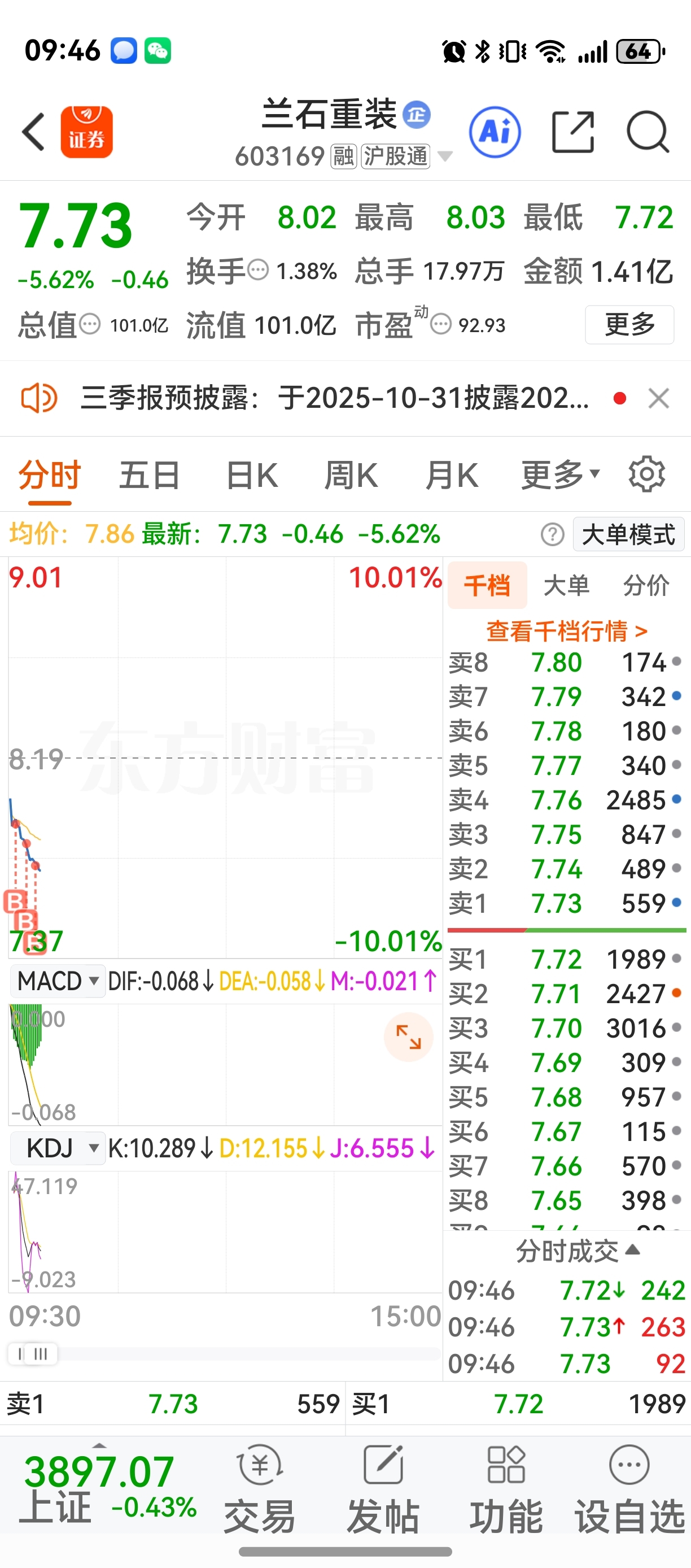 $兰石重装(SH603169)$ 我看你能不能砸跌停了!