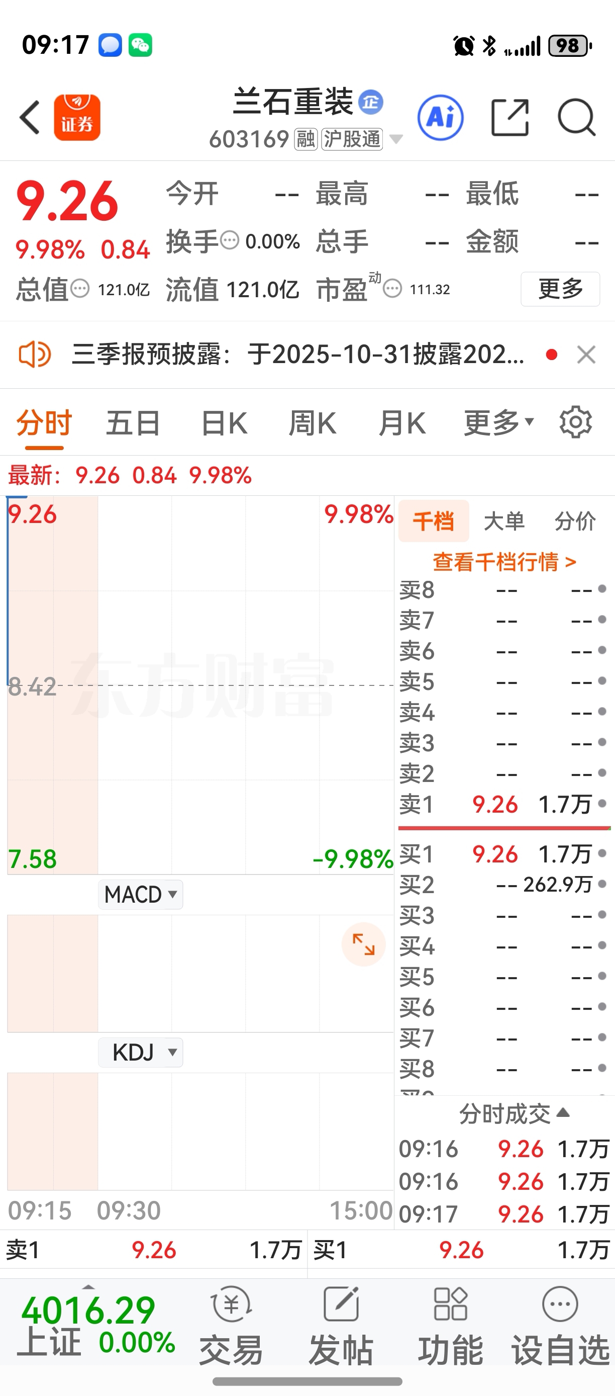 $兰石重装(SH603169)$ 哈哈这次有点猛了,板上先减二成,防止季报拖后腿!