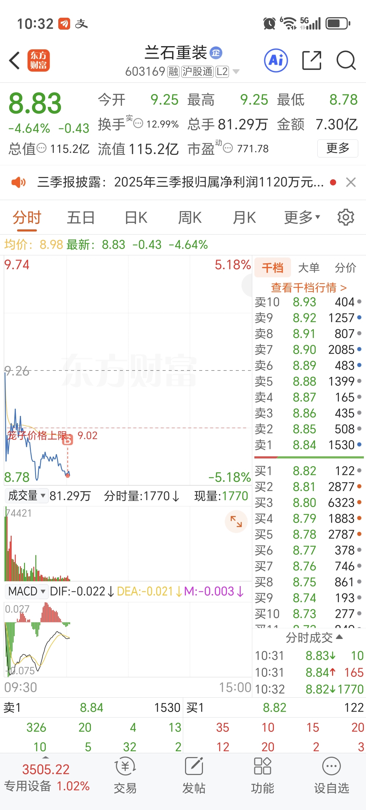 $兰石重装(SH603169)$ 韭菜的操作就这么简单,前天买飞了,今天接回