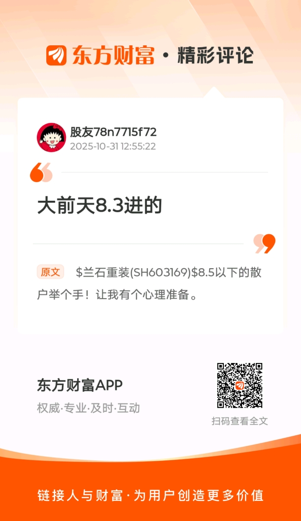 温馨提示: 1.根据《证券法》规定,禁止编造、传播虚假信息或者误导性信息,扰乱证券市场;2.用户在本社区发表的所有资料、言论等仅代表个人观点,与本网站立场无关,不对您构成任何投资建议。用户应基于自己的独立判断,自行决定证券投资并承担相应风险。《东方财富社区管理规定》