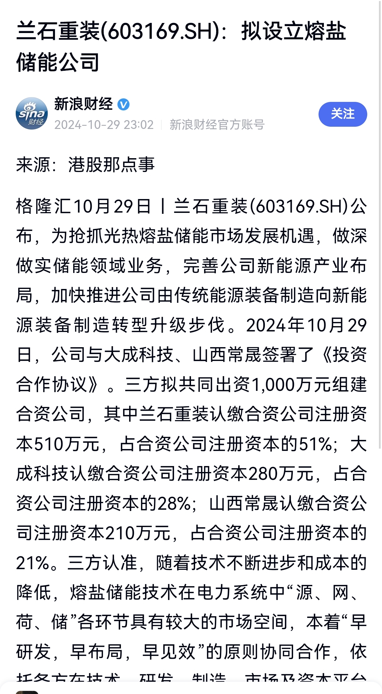 $兰石重装(SH603169)$ “熔盐储能”板块是不是要加上