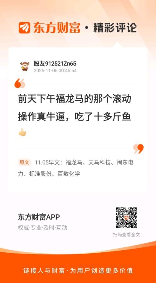福龙马: 昨天真是给咱长脸!开盘半小时就封版,带动了整个“马字辈”。这龙头气质,一下子就出来了。今天,我期待它能继续领涨,继续再创新高!