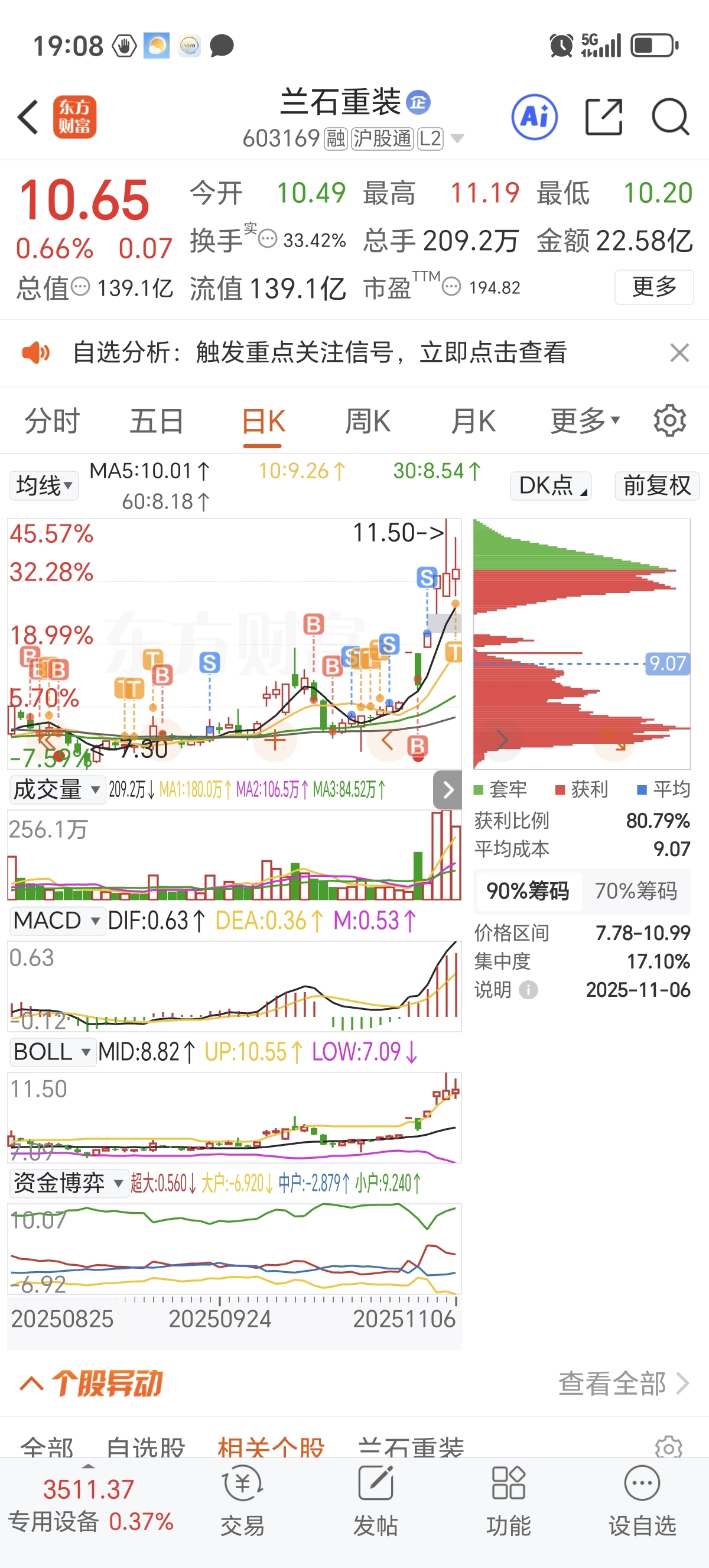 $兰石重装(SH603169)$ 这买卖点无懈可击,完美的避开了上涨过程,