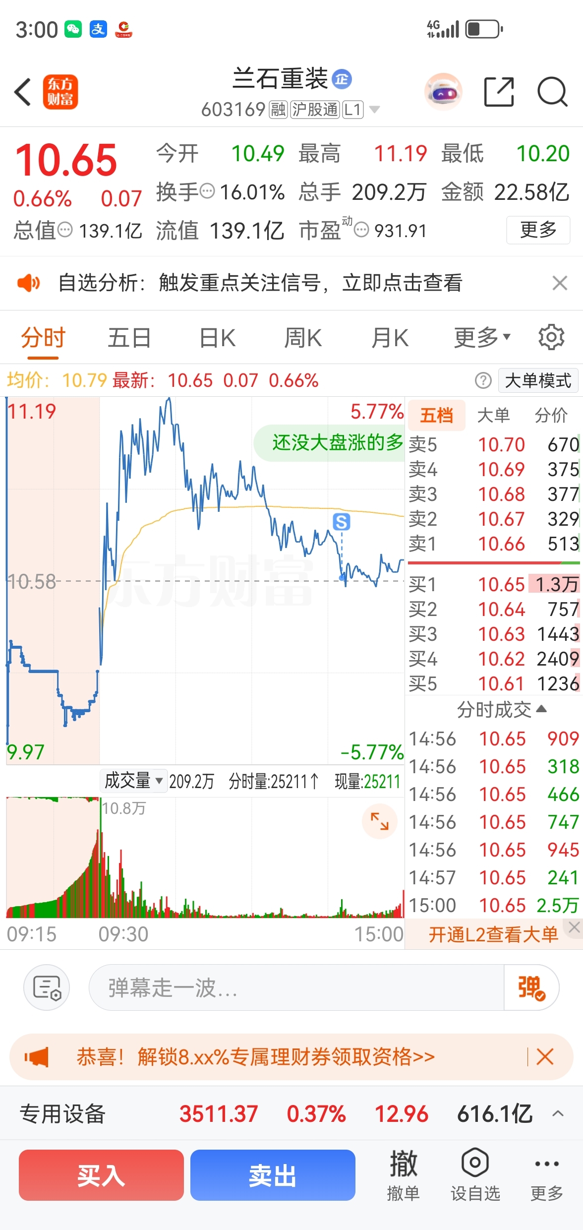 $兰石重装(SH603169)$ 我要是跟你们说,我买这个票亏五个点