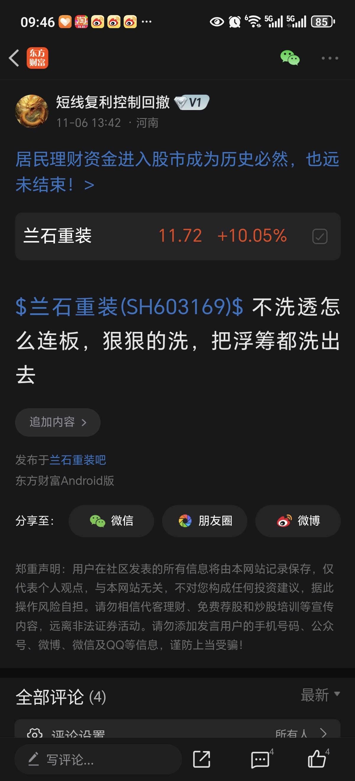 温馨提示: 1.根据《证券法》规定,禁止编造、传播虚假信息或者误导性信息,扰乱证券市场;2.用户在本社区发表的所有资料、言论等仅代表个人观点,与本网站立场无关,不对您构成任何投资建议。用户应基于自己的独立判断,自行决定证券投资并承担相应风险。《东方财富社区管理规定》