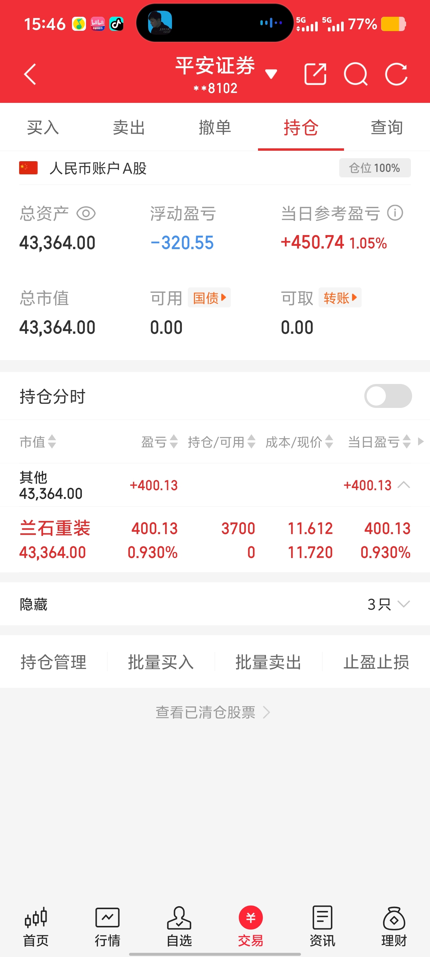 $兰石重装(SH603169)$ 11月7日持仓兰石重装