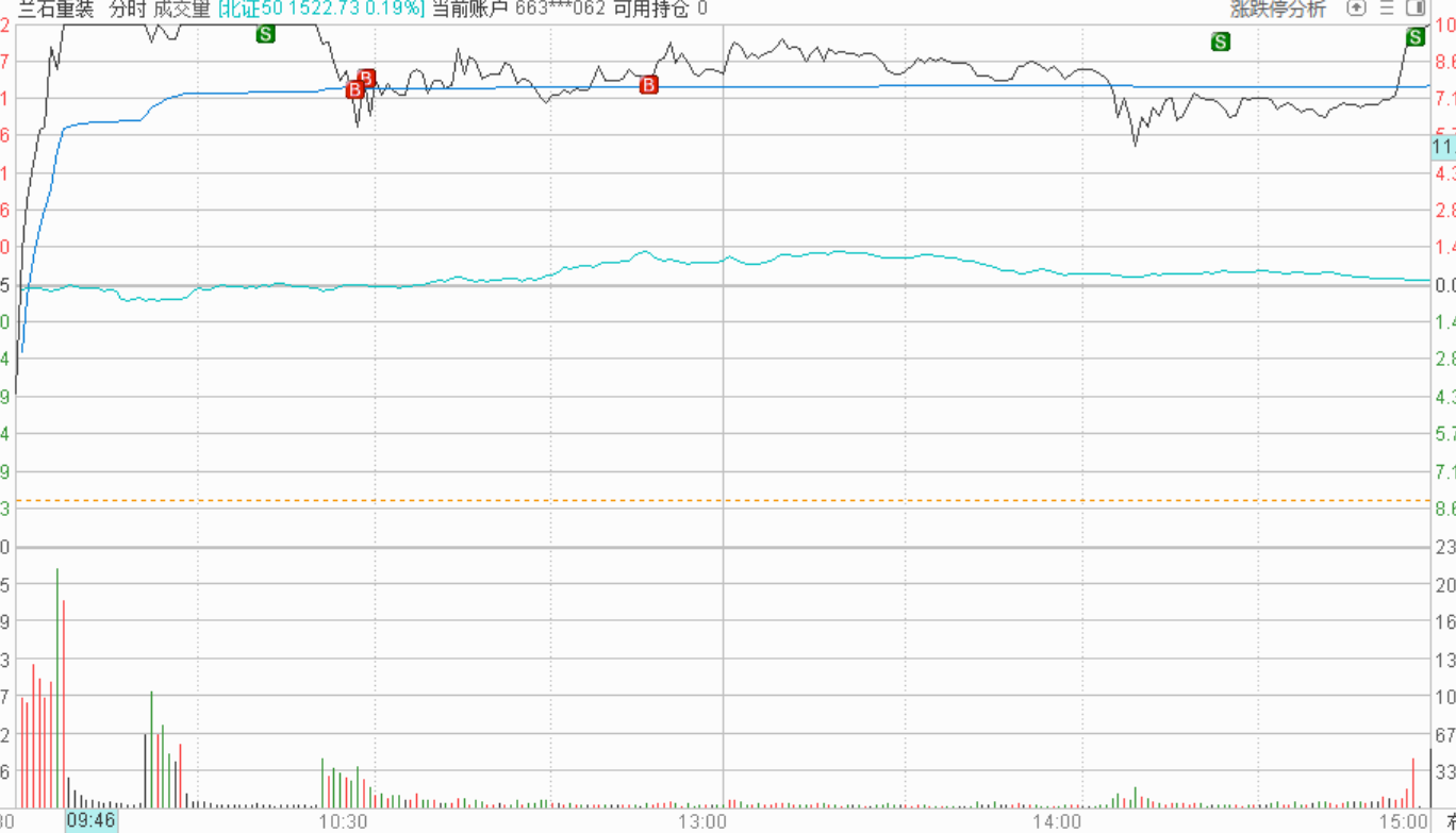 而分时走势上看,尾盘最后一秒成功封住了涨停。当然我也预判它能涨停,所以中途炸板的时候加了几笔,尾盘T出。