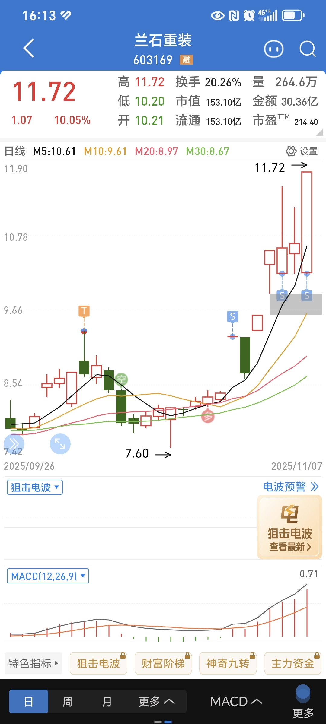 $兰石重装(SH603169)$ 祝还持有的朋友发财,前二天的天线,今天了走一半。